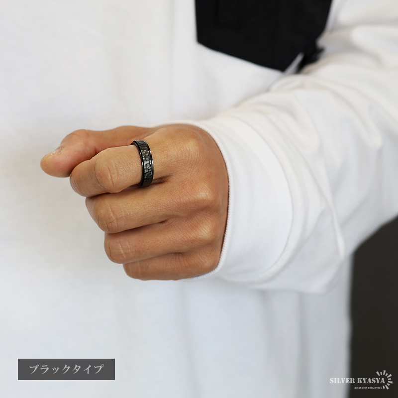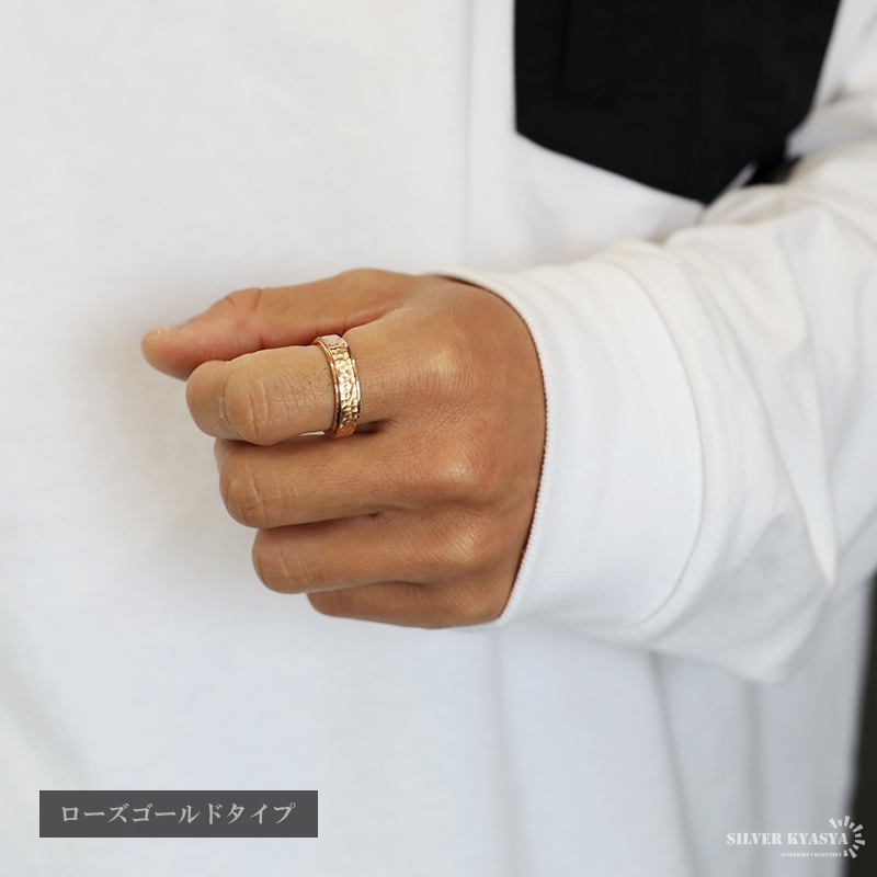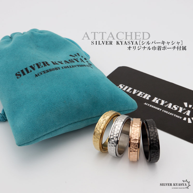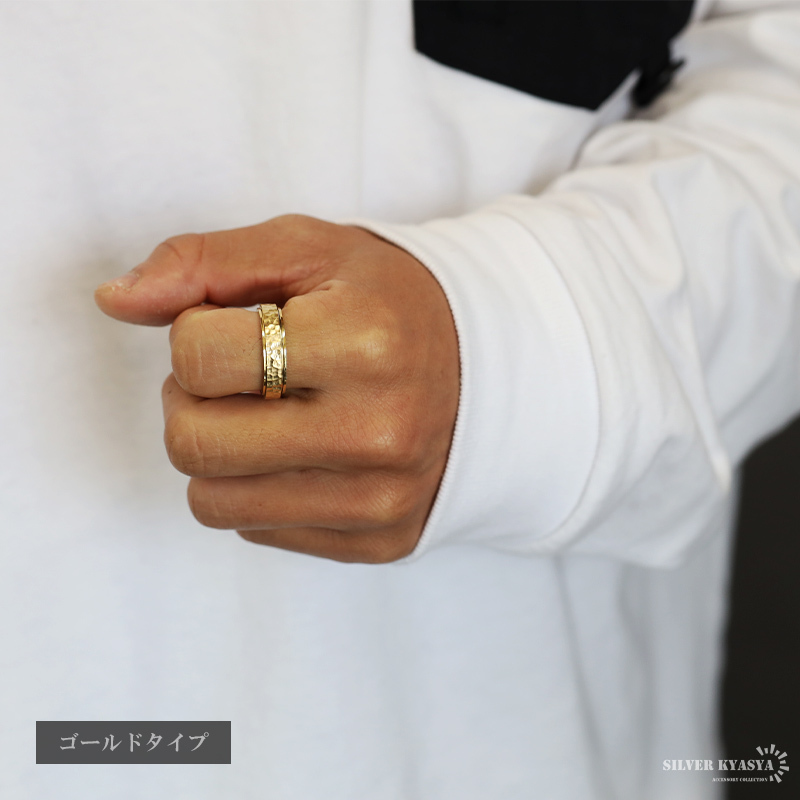 魅惑的な槌目模様を施したユニークなリング。全4カラー。槌目部分は回転するギミックを施しており、遊びゴコロ溢れるアイテム。