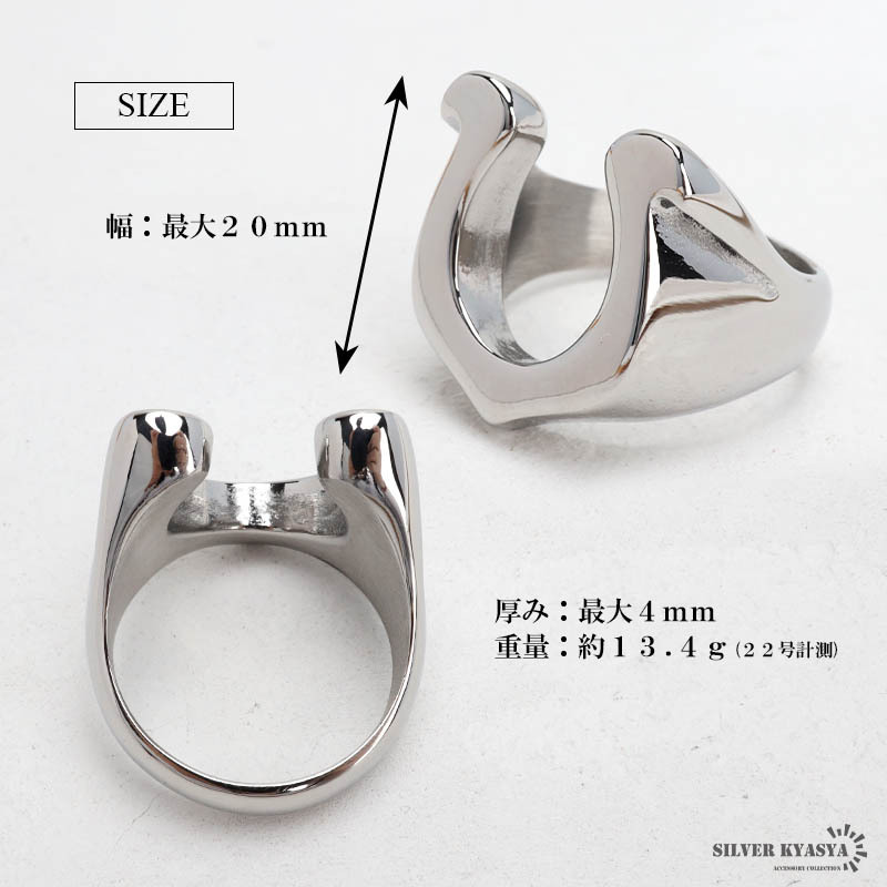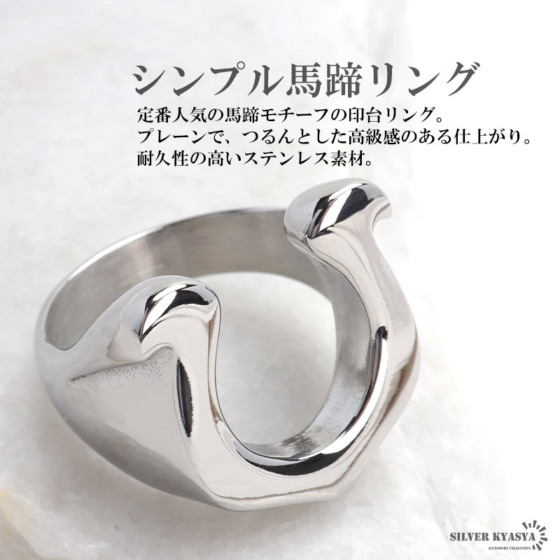 | 商品概要 | ■シンプル馬蹄リング 定番人気の馬蹄モチーフの印台リング。プレーンで、つるんとした高級感のある仕上がり。耐久性の高いステンレス素材。 ■ステンレス素材を使用 金属部分は頑丈なことで知られるステンレス素材を採用。耐久性はもちろん耐水性も高く水場での着用も可能。金属アレルギーも出にくいとされている金属です。 |
