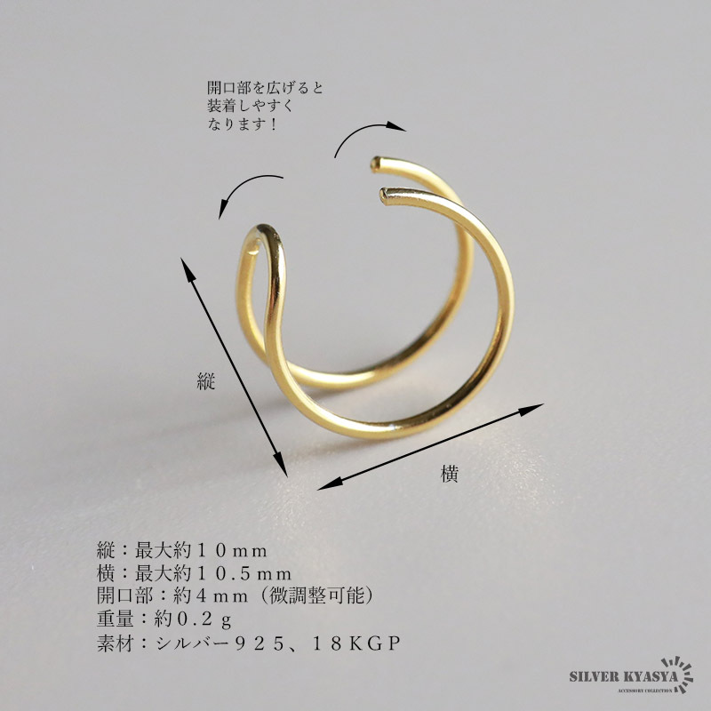 商品概要 | ■ITEM DETAIL メタルな質感が魅力的な2ラインデザインのイヤーカフ。シンプルなのでピアスやイヤリングとの重ね付けもおすすめです。 ■SILVER925素材 シルバー925は、銀含有率(純度)92.5%を示し、一般的に純銀として扱われています。サビや劣化等がほとんどなく金属アレルギーも出にくいとされており、アクセサリーとして重宝される金属です。 |