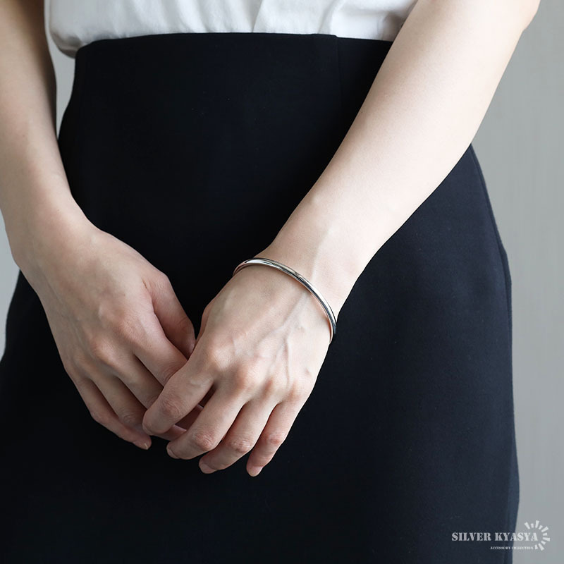 サイズ | 幅:約4mm 腕周り:[S]16.5cm程度 [M]18cm程度 [L]20cm程度 内直径:[S]5.5cm程度 [M]6cm程度 [L]6.6cm程度 参考:レディースモデル腕周り:14.5cm |