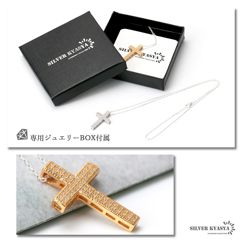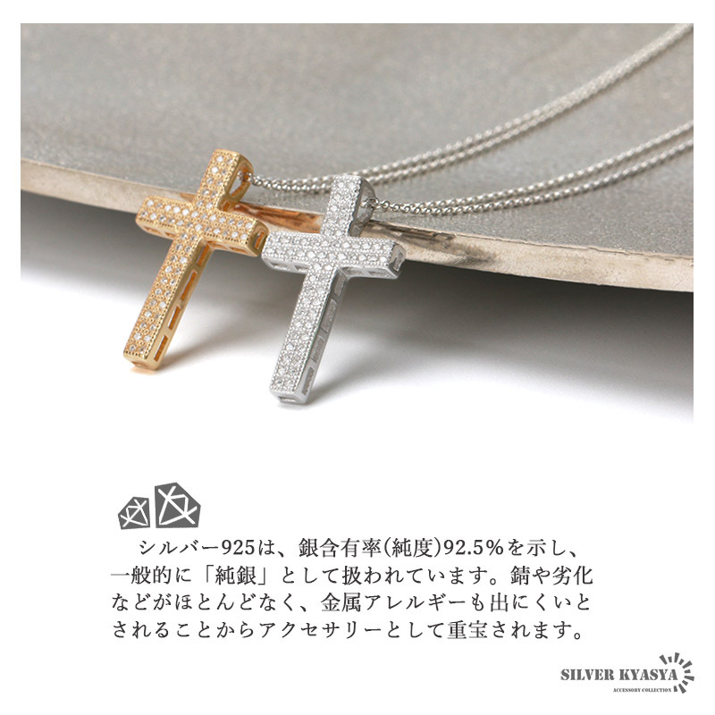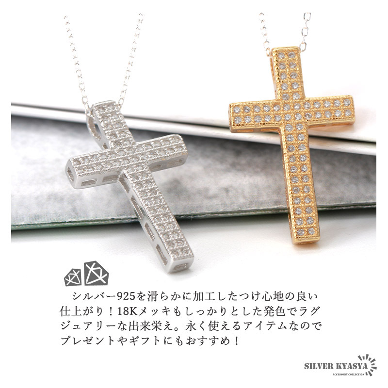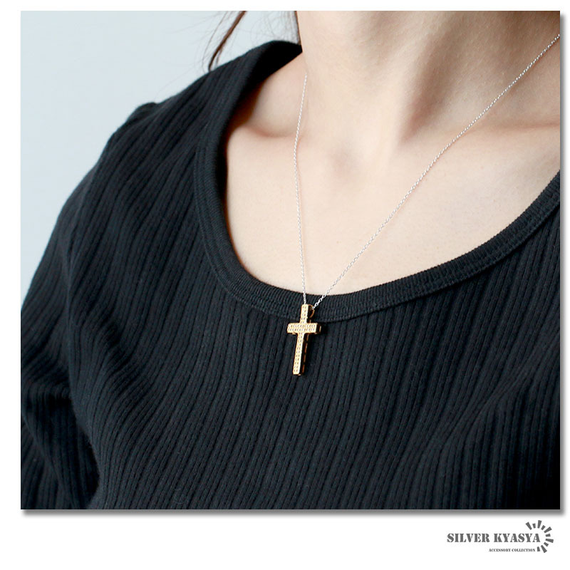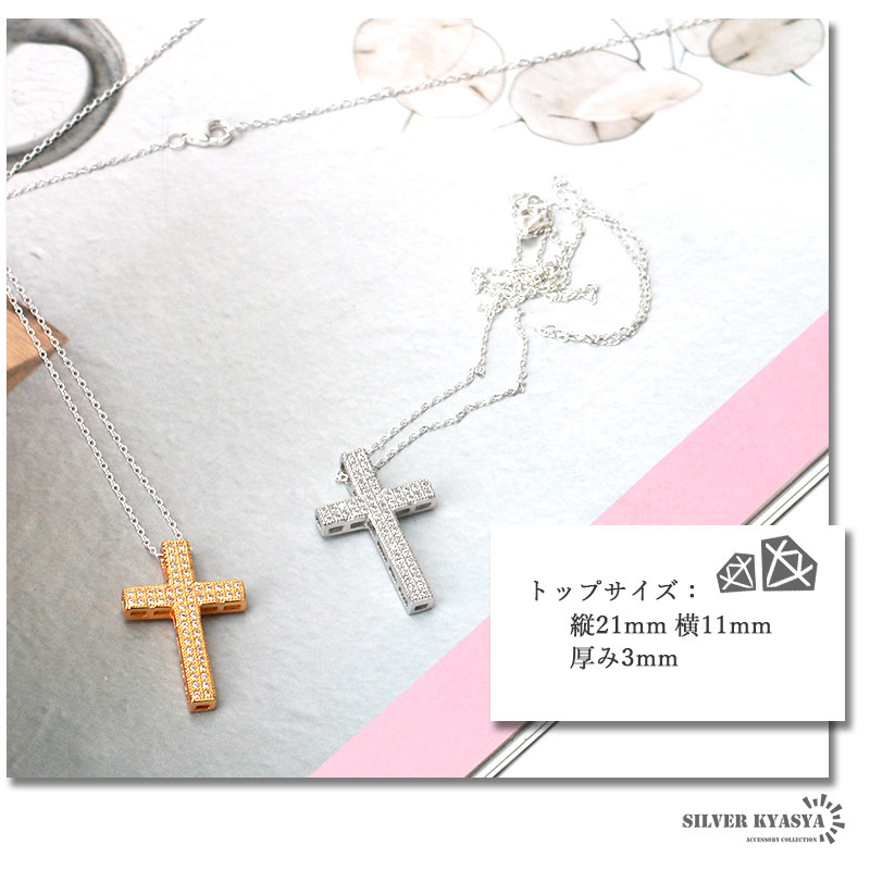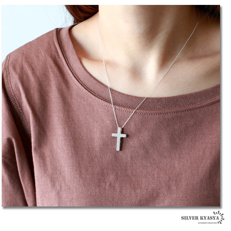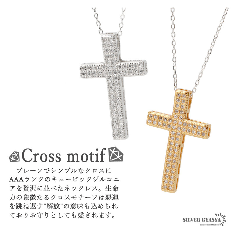 ・プレーンでシンプルなクロスデザインのペンダントトップを据えたネックレスです。