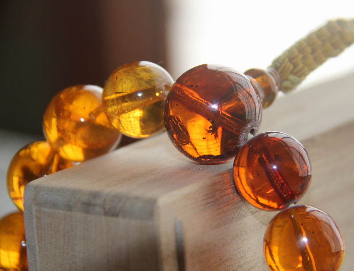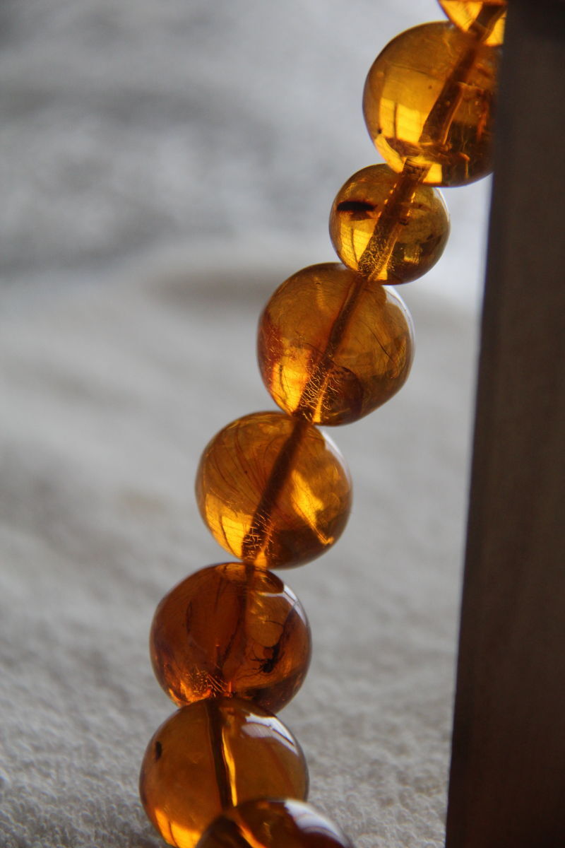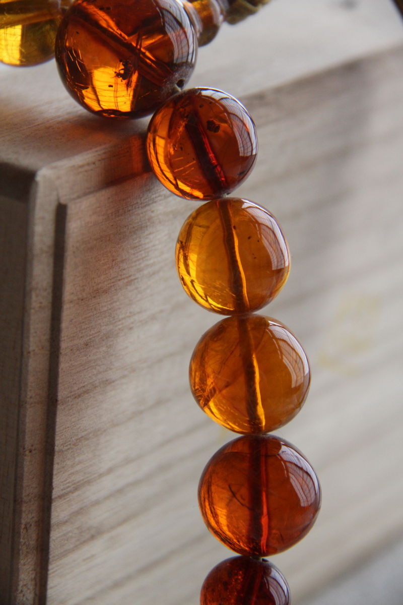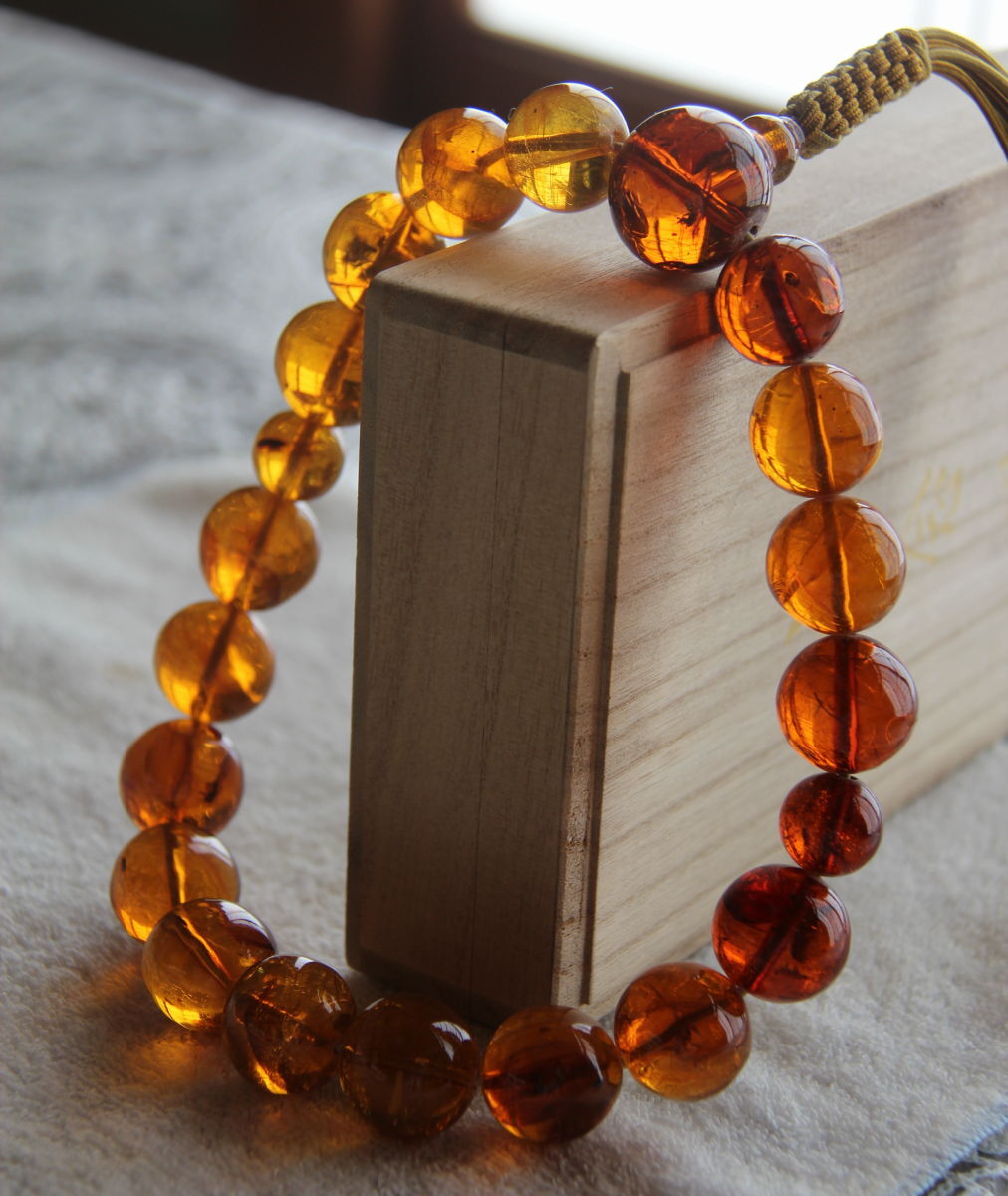 虫入り天然琥珀のお念珠です。