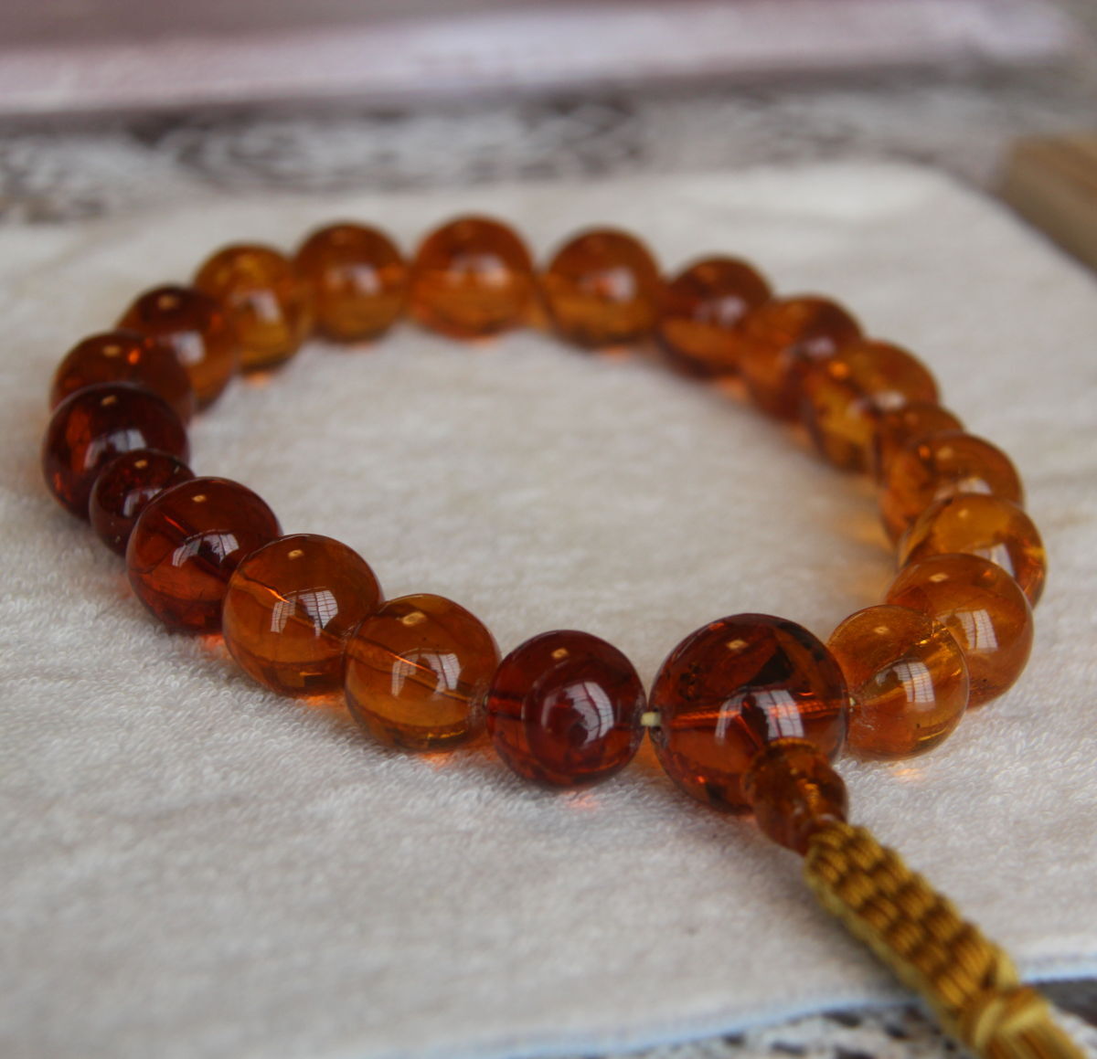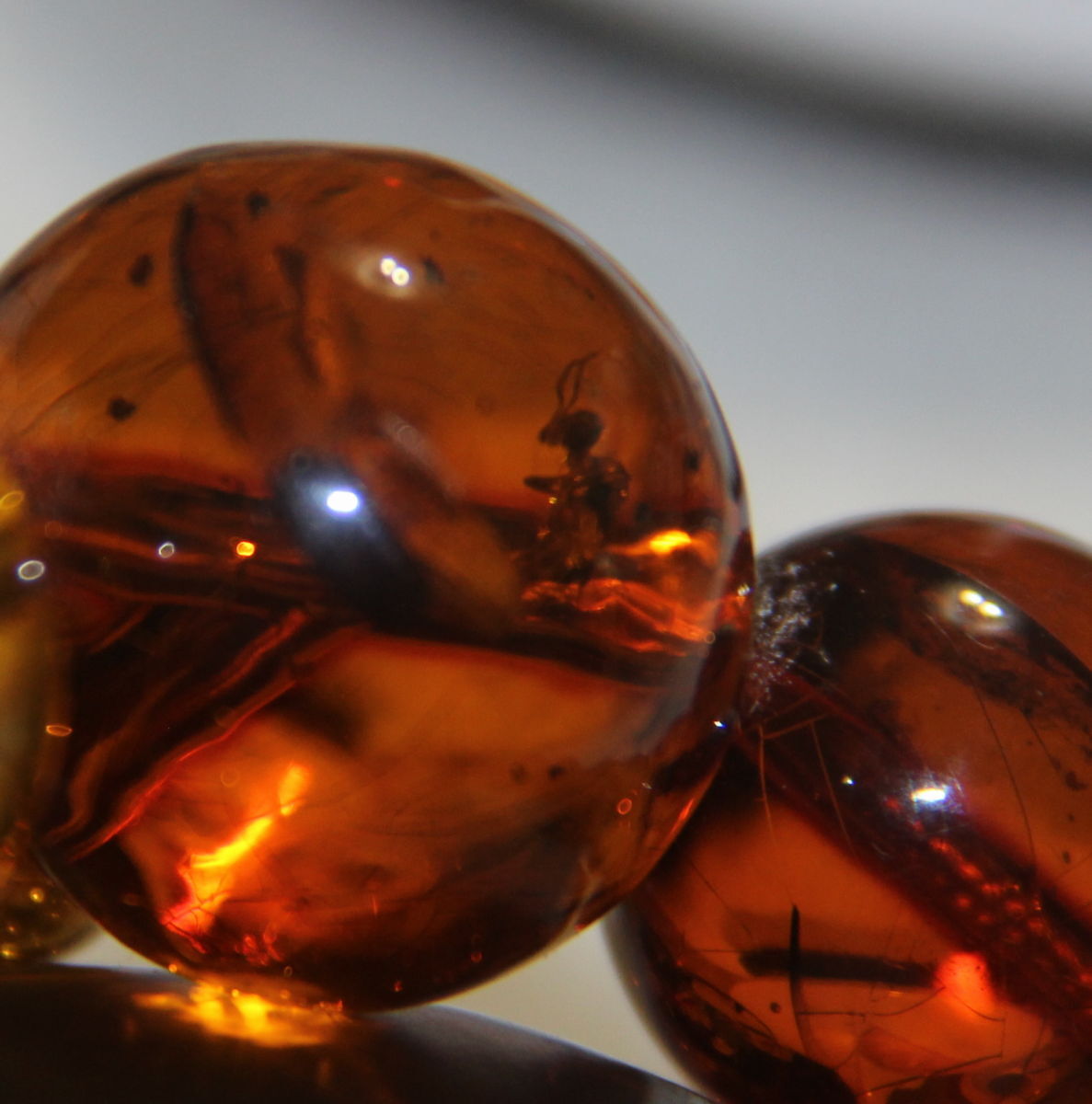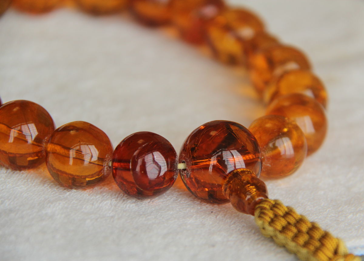 虫入り天然琥珀のお念珠です。