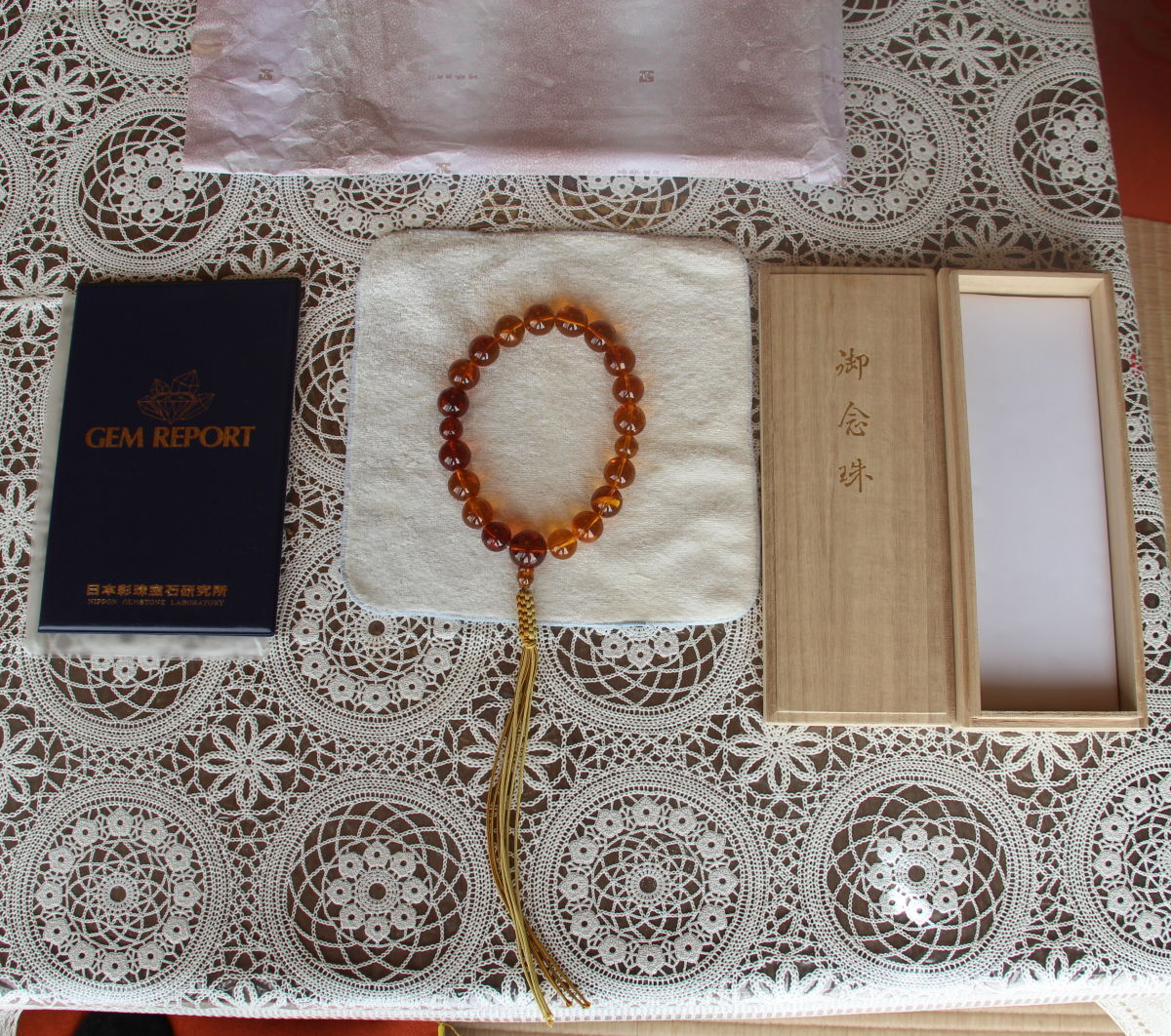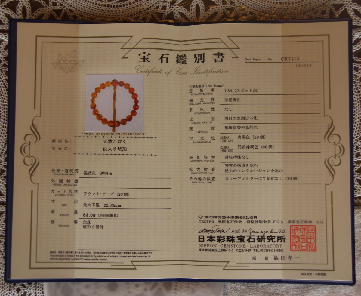 【鑑定証付き】 御念珠・数珠 虫入り・天然琥珀20玉 最大玉径 22.83㎜ 重量 83.0g