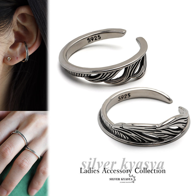 商品概要 | ■ITEM DESIGN フェザーをモチーフにしたシンプルなデザイン。リングやイヤーカフに使用できる飽きのこない2WAY仕様のアイテム。 ■SILVER925素材 シルバー925は、銀含有率(純度)92.5%を示し、一般的に純銀として扱われています。サビや劣化等がほとんどなく金属アレルギーも出にくいとされており、アクセサリーとして重宝される金属です。 |