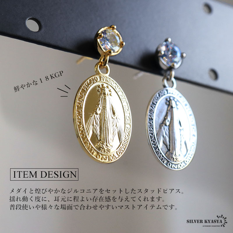 商品概要 | ■ITEM DETAIL メダイと煌びやかなジルコニアをセットしたスタッドピアス。揺れ動く度に、耳元に程よい存在感を与えてくれます。普段使いや様々な場面で合わせやすいマストアイテムです。 ■SILVER925素材 シルバー925は、銀含有率(純度)92.5%を示し、一般的に純銀として扱われています。サビや劣化等がほとんどなく金属アレルギーも出にくいとされており、アクセサリーとして重宝される金属です。 |