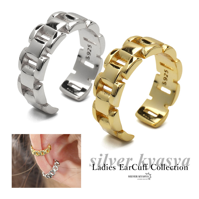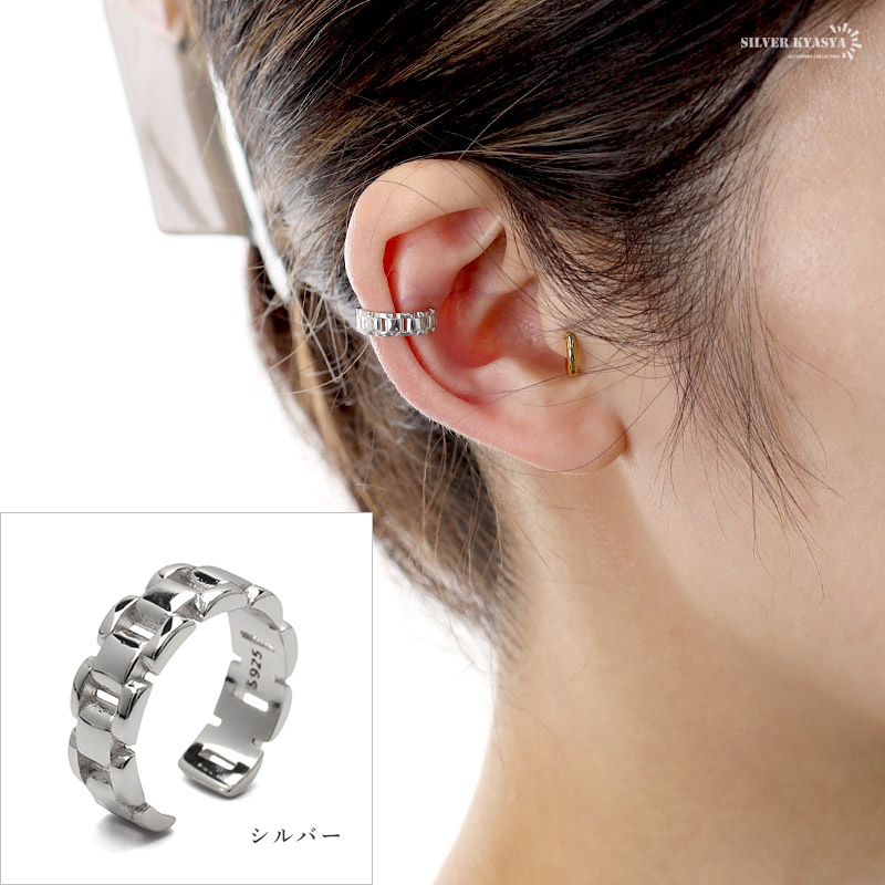 チェーン風のデザインが洗練された大人っぽい雰囲気を纏うイヤーカフ。