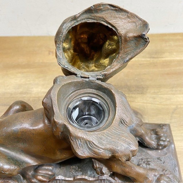 イギリス 英国 ENGLAND ヴィンテージ 1900’s アンティーク ブロンズ インクポット ペンホルダー インテリア レア 希少【B1447】