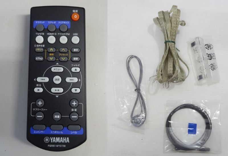 付属品:リモコン、スピーカーケーブル、光デジタルケーブル、アンテナ