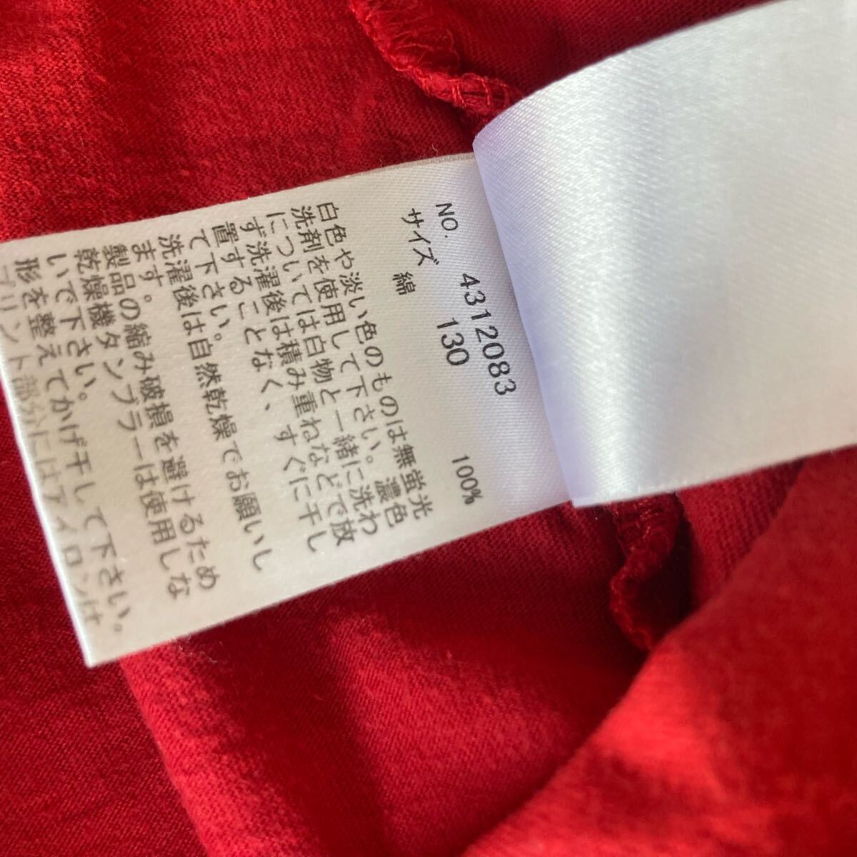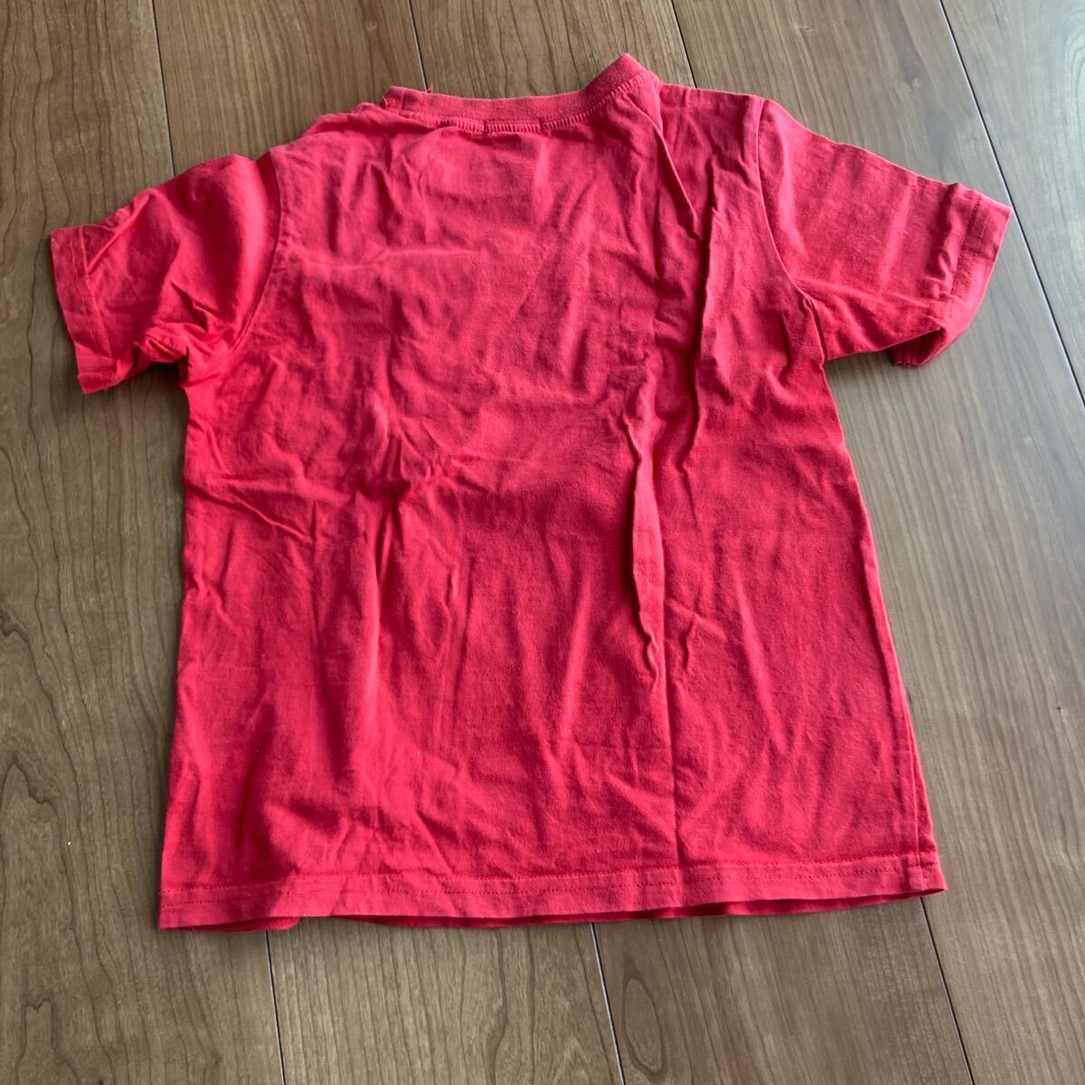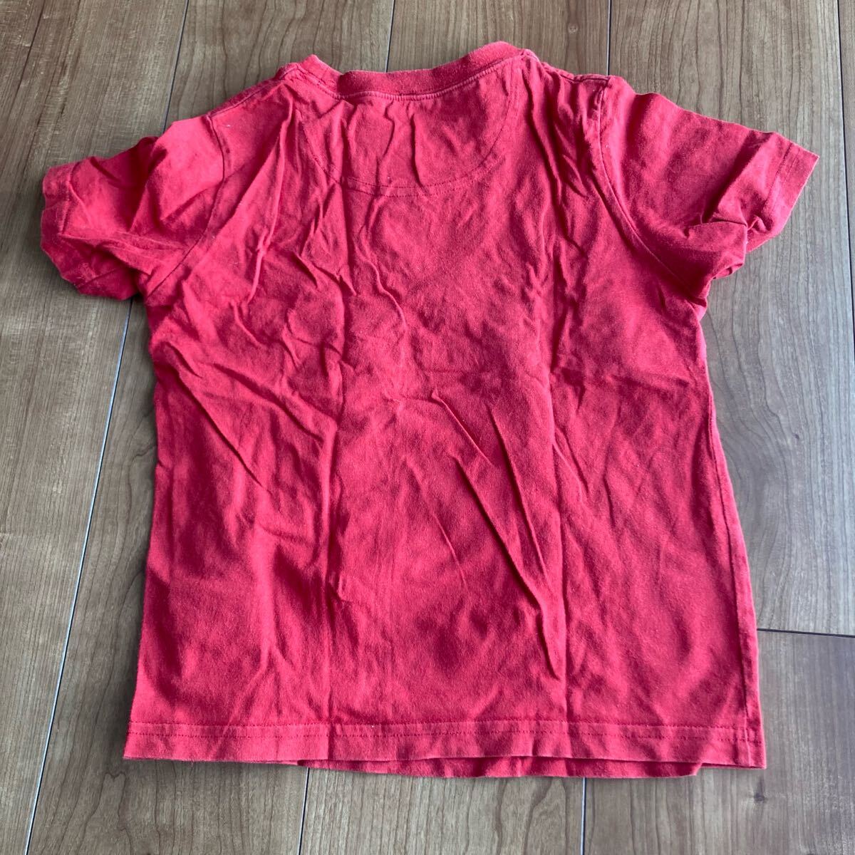 赤色のストライプデザインのTシャツ、カジュアルなスタイルで、130サイズ。