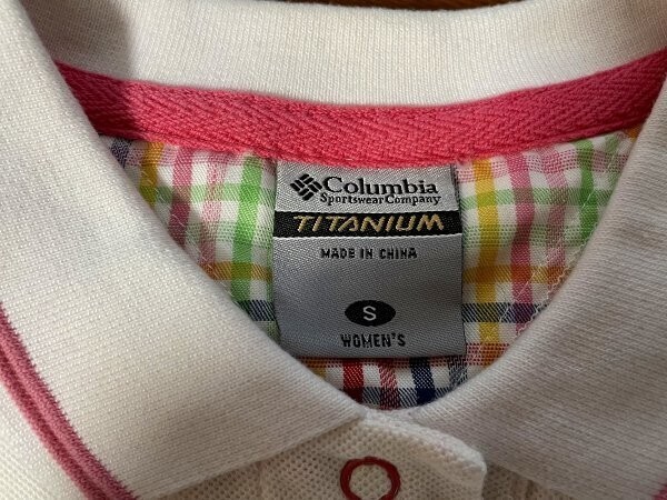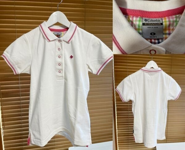 ★【激安1点のみ 国内正規品 デザイン◎】Columbia コロンビア チタニウム TITANIUM ロゴ ライン ポロシャツ 半袖 シャツ S ホワイト