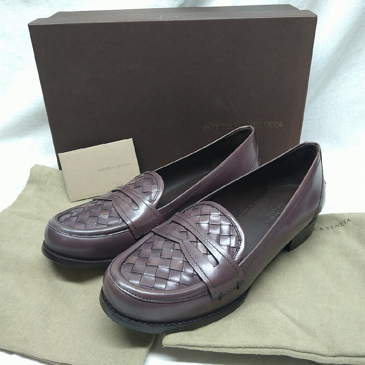 $未使用品【 BOTTEGA VENETA ボッテガヴェネタ レディース ローファー カーフレザー イントレチャート サイズ37 箱入り 靴 】 KH13715