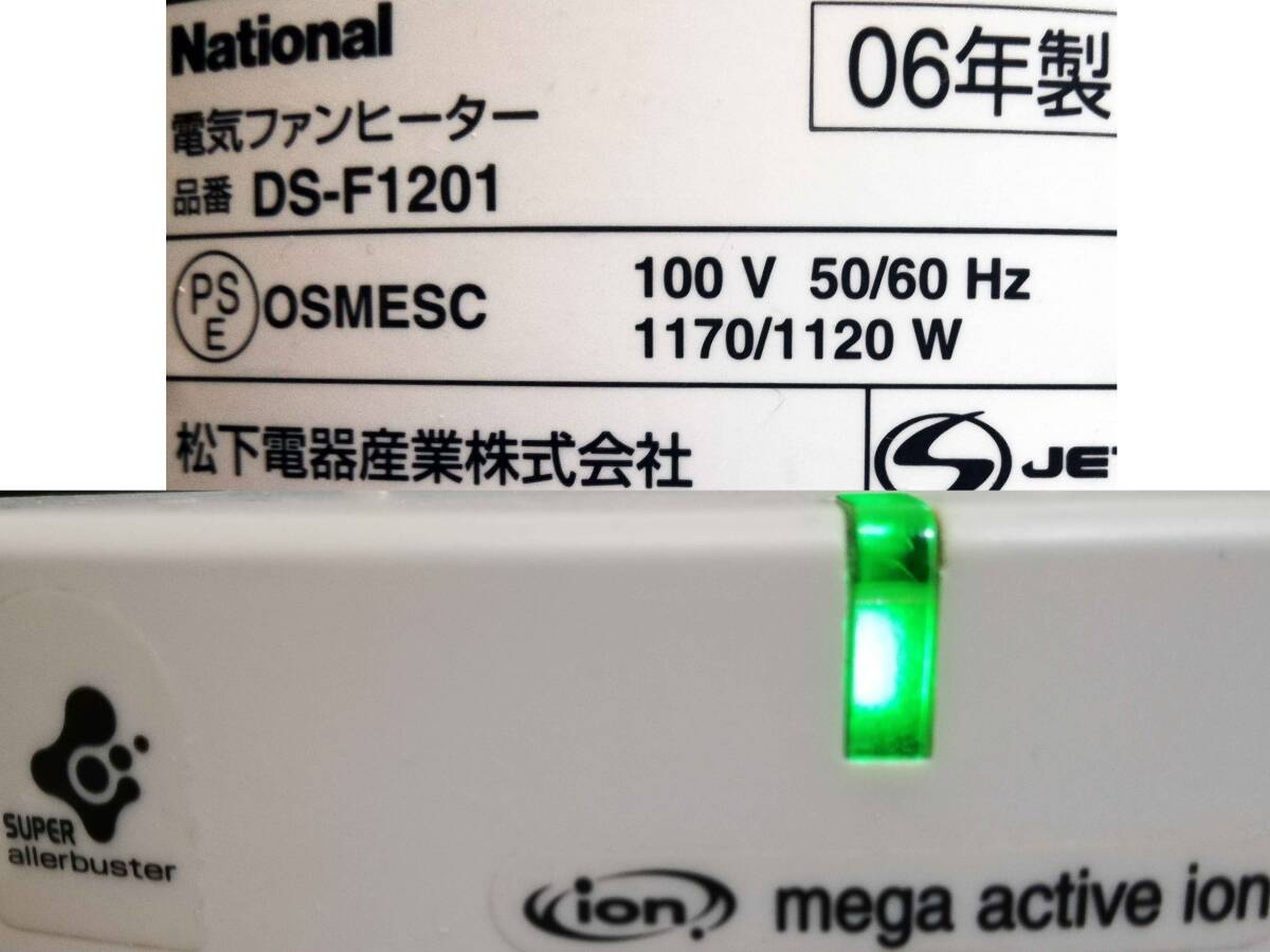 美品◆National (Panasonic) 電気 ファンヒーター DS-F1201 / 暖房 コンパクト スリム 軽量 ワンルーム 子供部屋 トイレ 脱衣場◆ 松下電器
