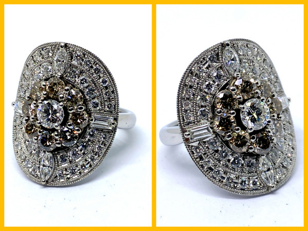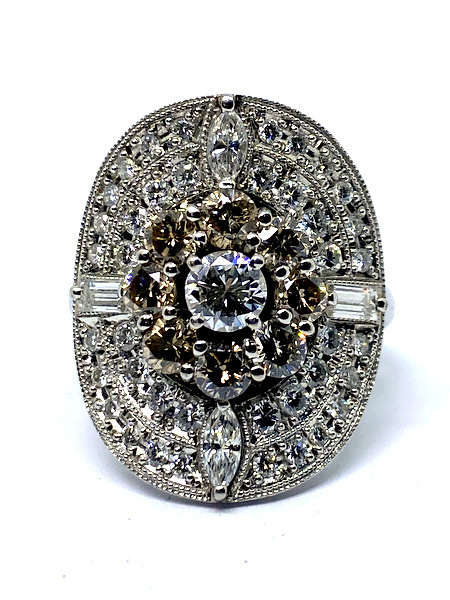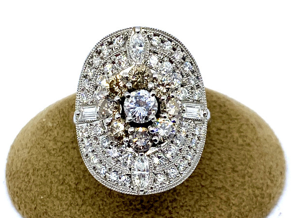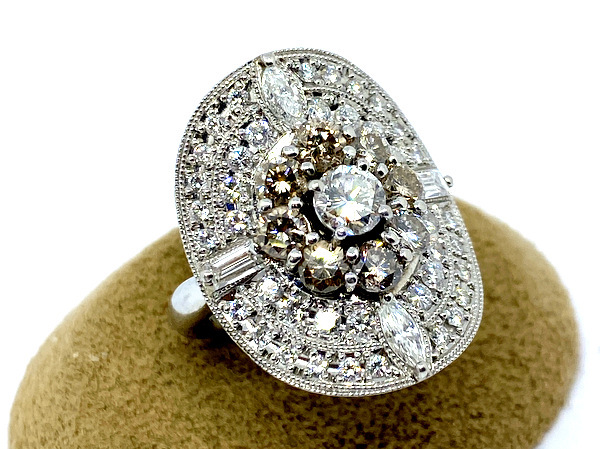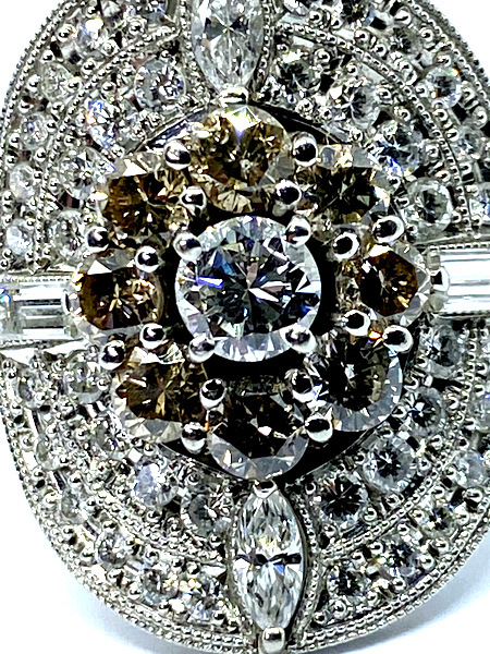 センターダイヤモンドの取り巻きにブラウンダイヤモンドを使用しているのもいい引き立て役となり高級感を演出しております。