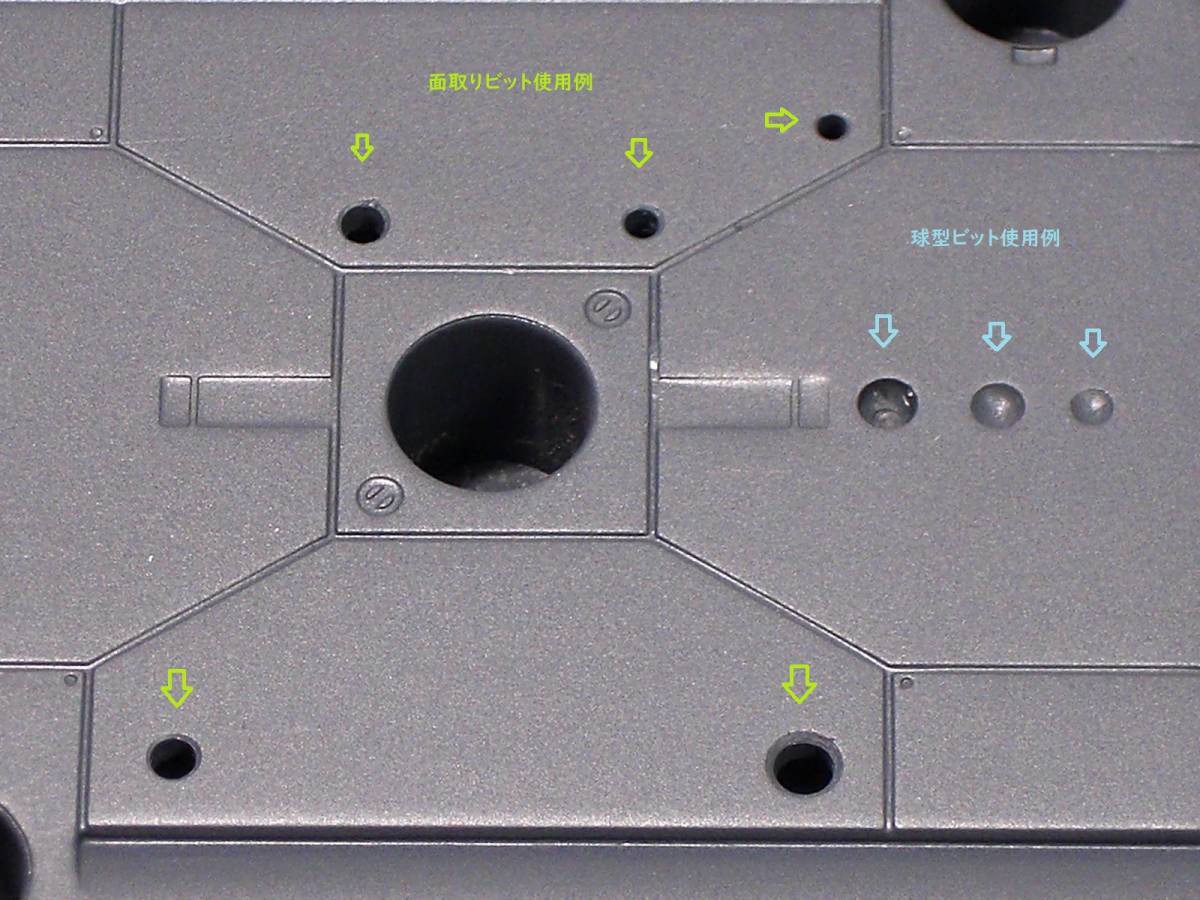 ドリル穴の面取りや、ディテールアップパーツの取り付け穴を掘ったり、リューターに取り付けて、ダメージ加工などにも使えます。