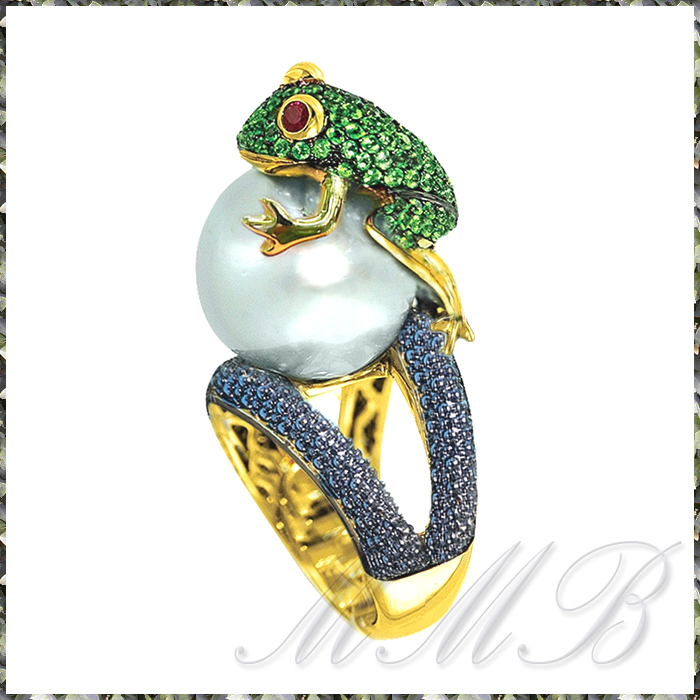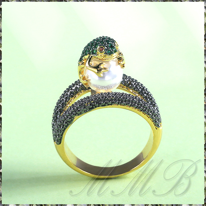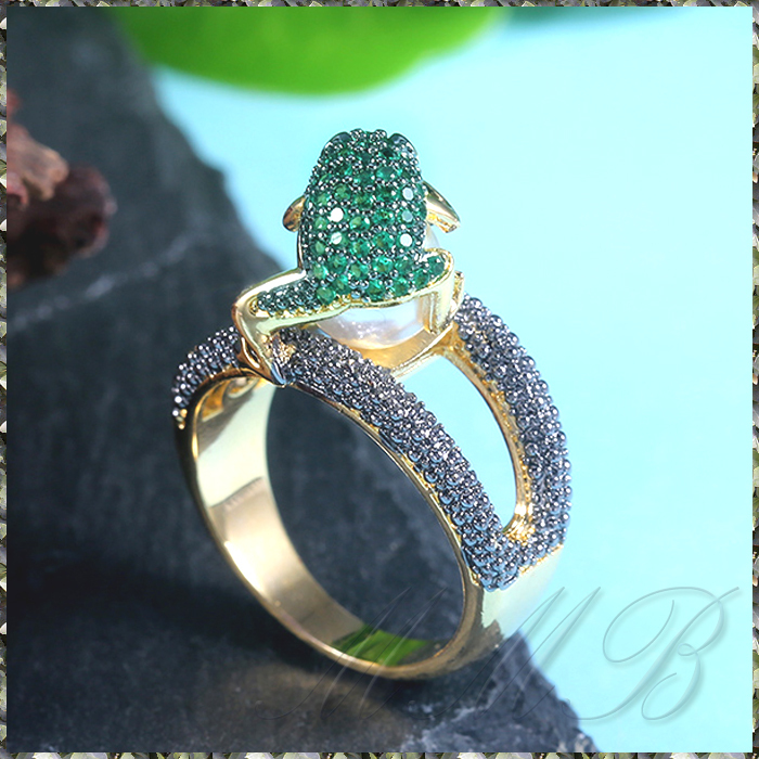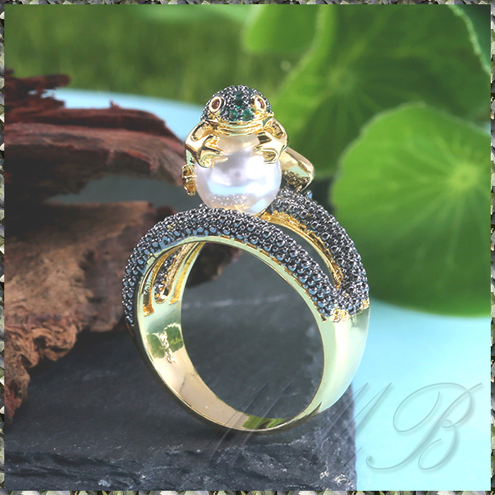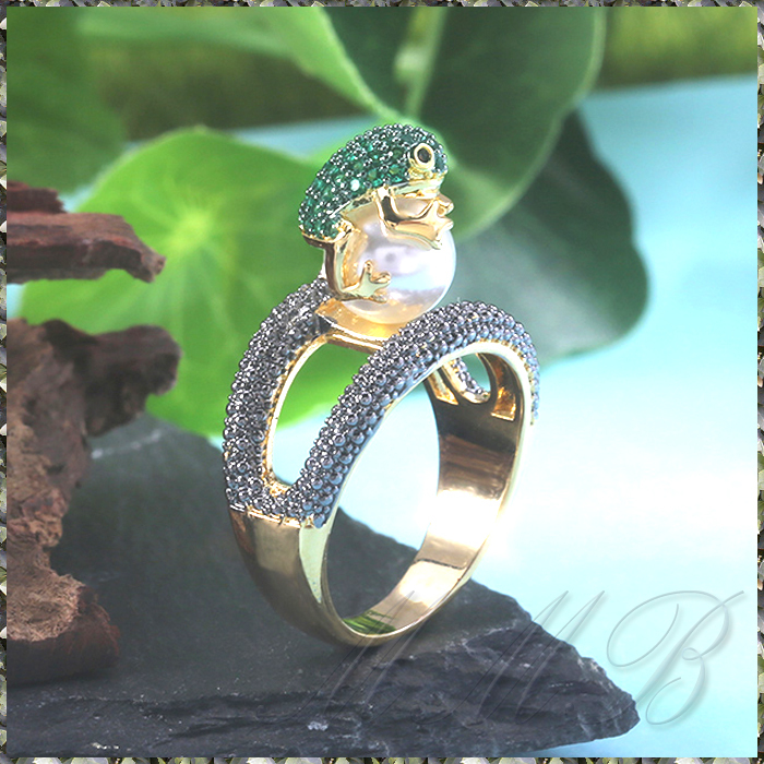 Gold Plated Frog Hug Pearl かわいいカエルが真珠に抱きついているデザイン ゴールド プレーティング リング です。