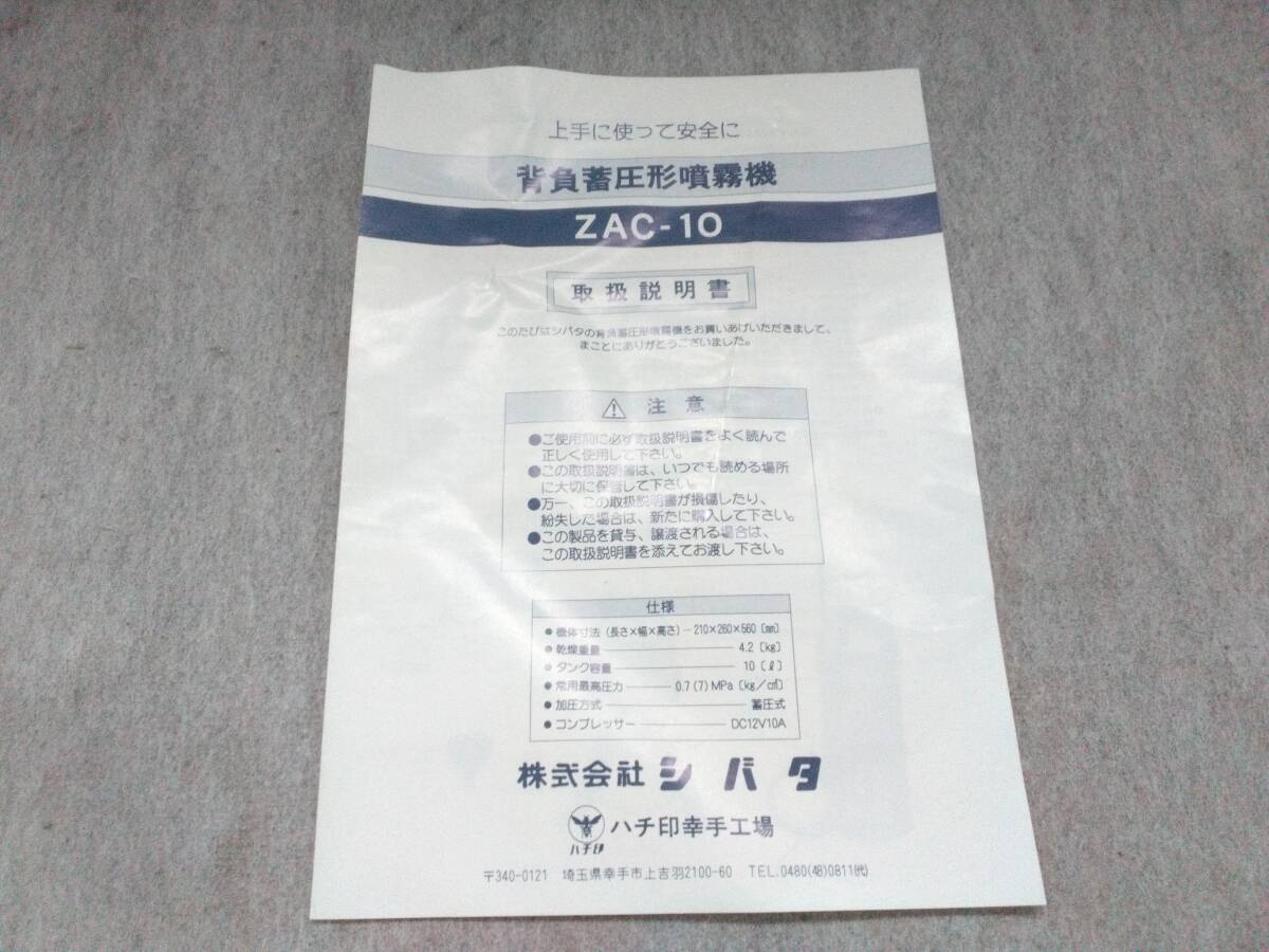 岩手 未使用品 シバタ 背負蓄圧型噴霧機⑥ ZAC-10 ハチ印 薬剤散布 農薬散布 散布機 畑 家庭菜園  店頭販売 農機具市場 矢巾店