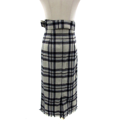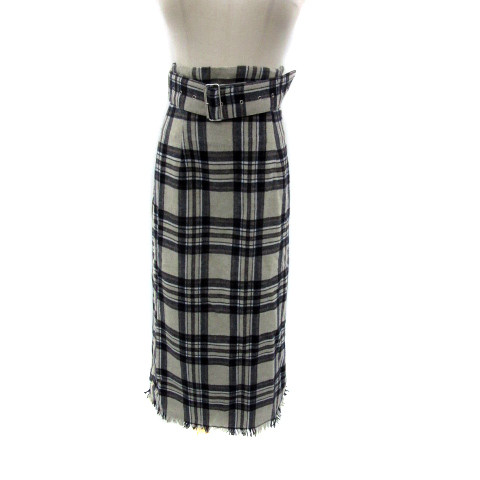 アーバンリサーチ タイトスカート マキシ丈 ロング丈 チェック柄 フリンジ ウエストベルト付き F マルチカラー グレー レディース