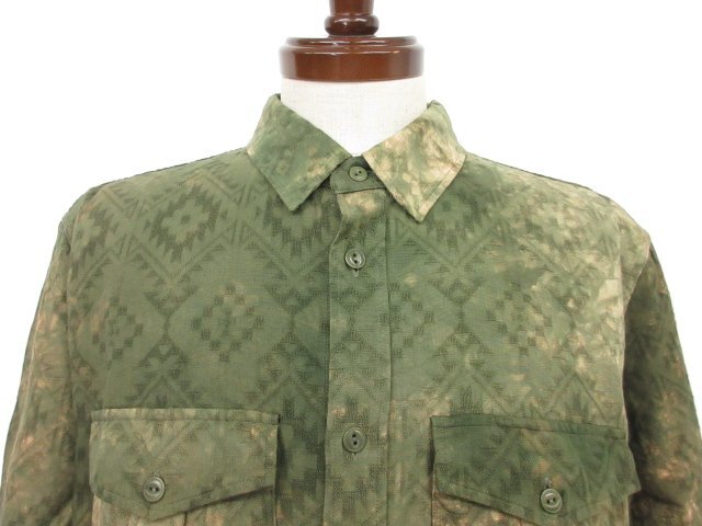 未使用【グランシャツ GLANSHIRT】5XRC00 G6679 730 定価55000円 タイダイ×ネイティブ柄 長袖シャツ (メンズ) size41 緑系◯10GRS047◯