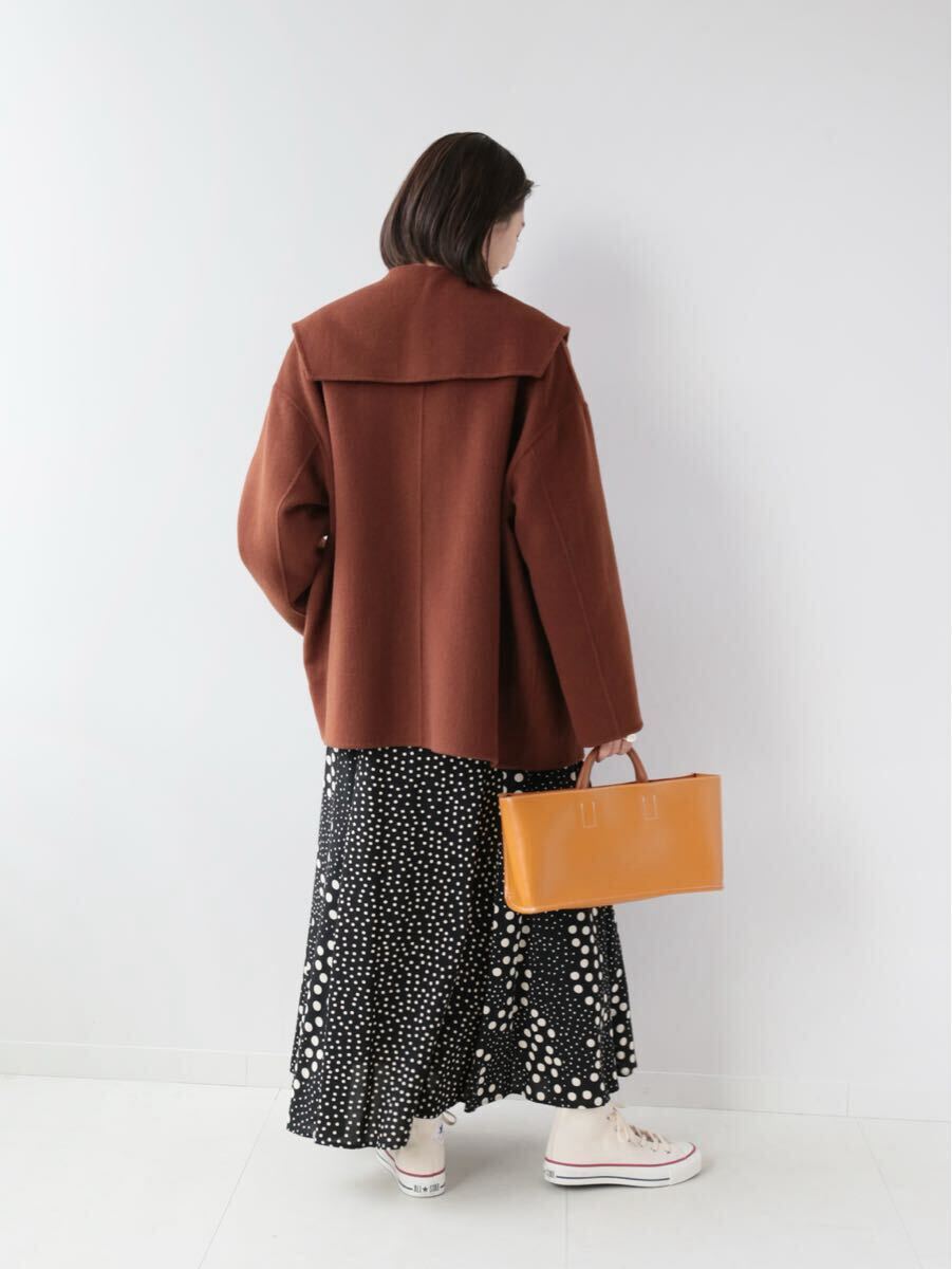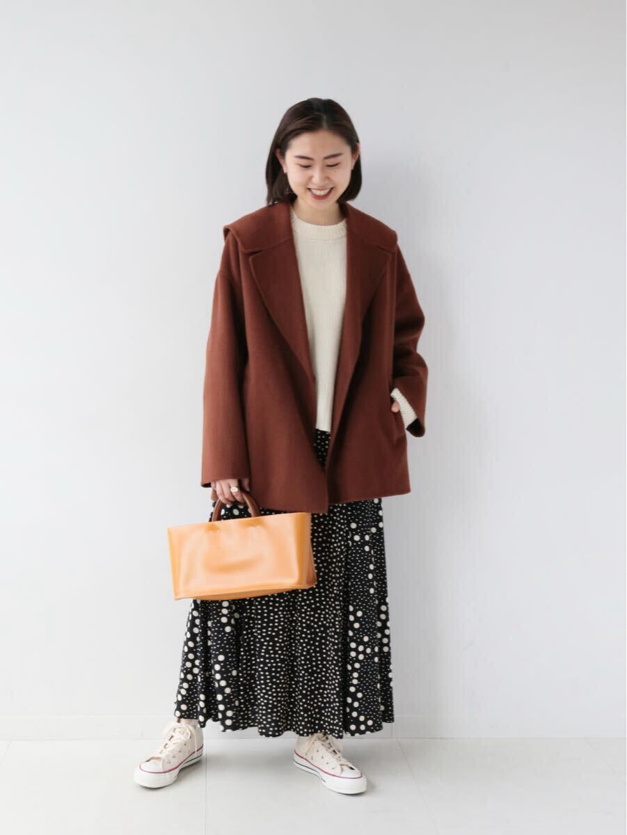 ドロップショルダーなので、厚手なインナーにも羽織りやすいのがポイントです。