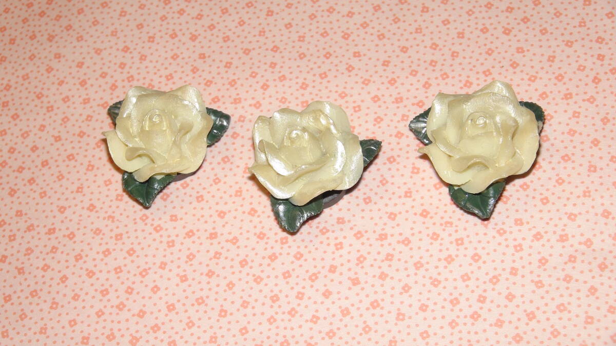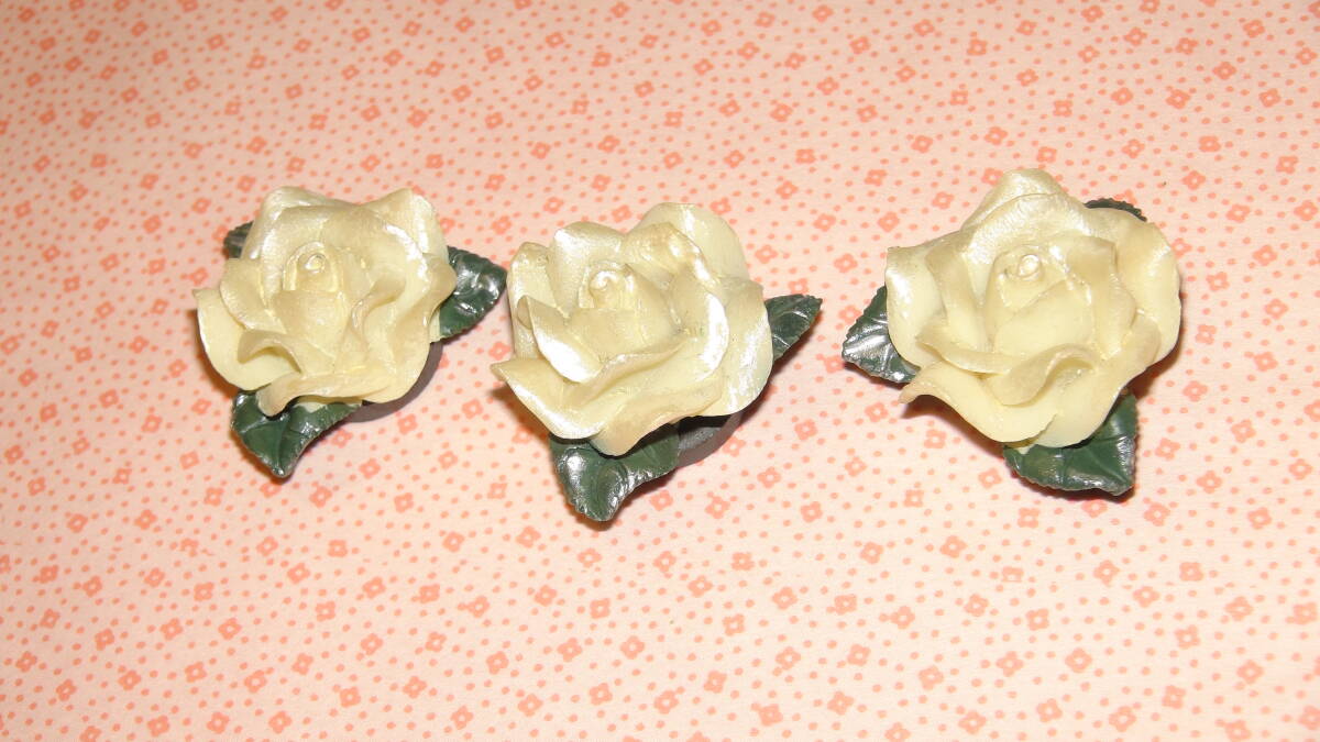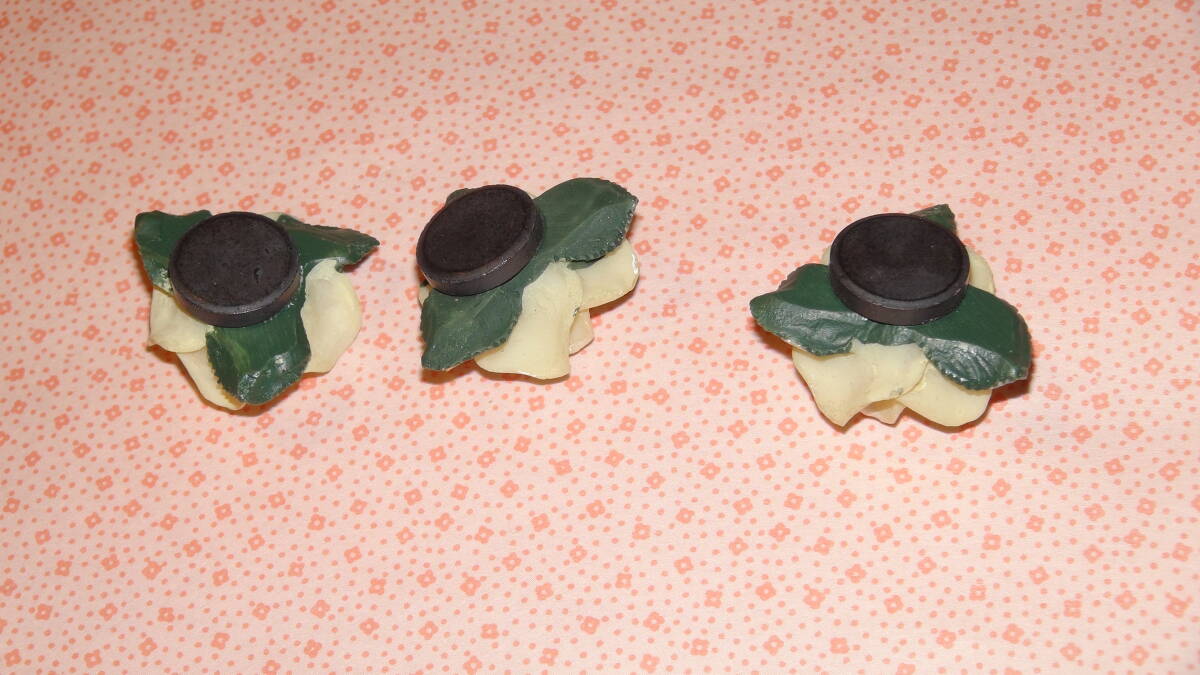 (インテリア・マグネット・新品)薔薇の花形マグネット(3個入り) 25×25mm、アイボリー 鉄製ボード等にメモ等を止めるのに良いです。