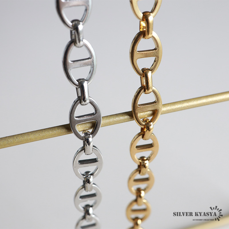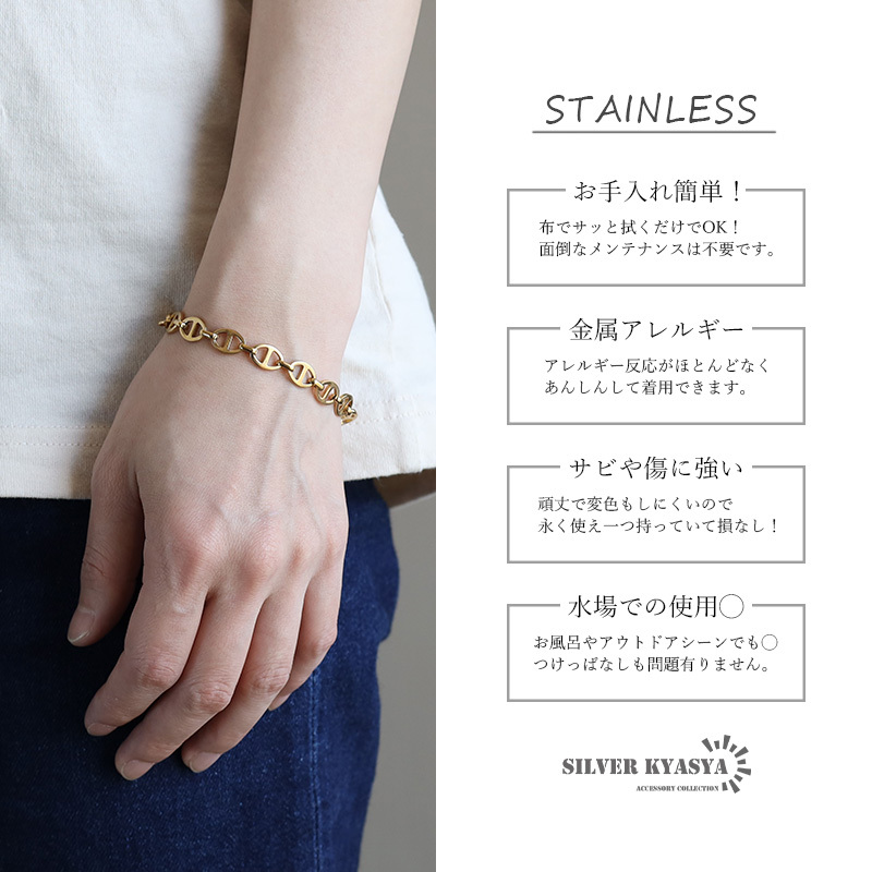アンカーチェーンブレスレット 幅8mm ゴールド ステンレス K18 レディース メンズ ネックレス 錨 鎖 つけっぱなしOK
