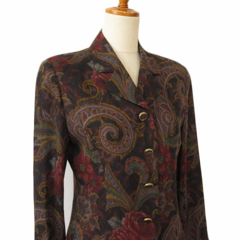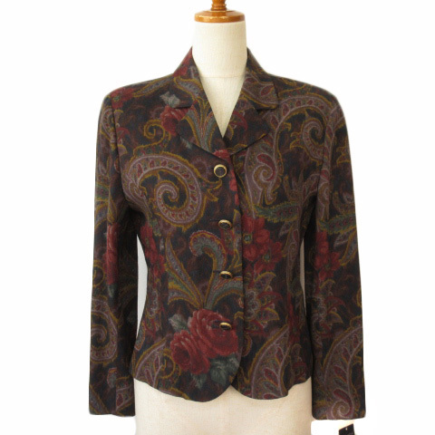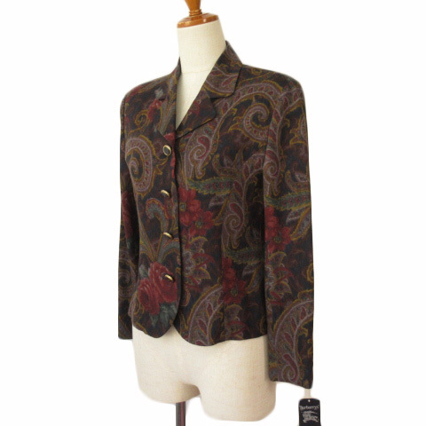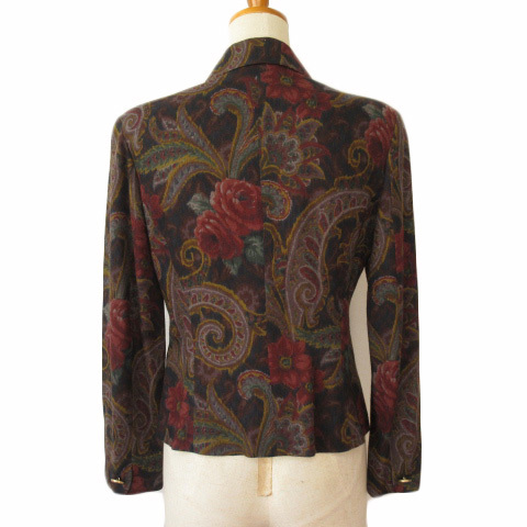 バーバリーズ Burberrys ビンテージ レトロ ジャケット 花柄 ペイズリー ウール 7 国内正規 黒 ブラック レディース