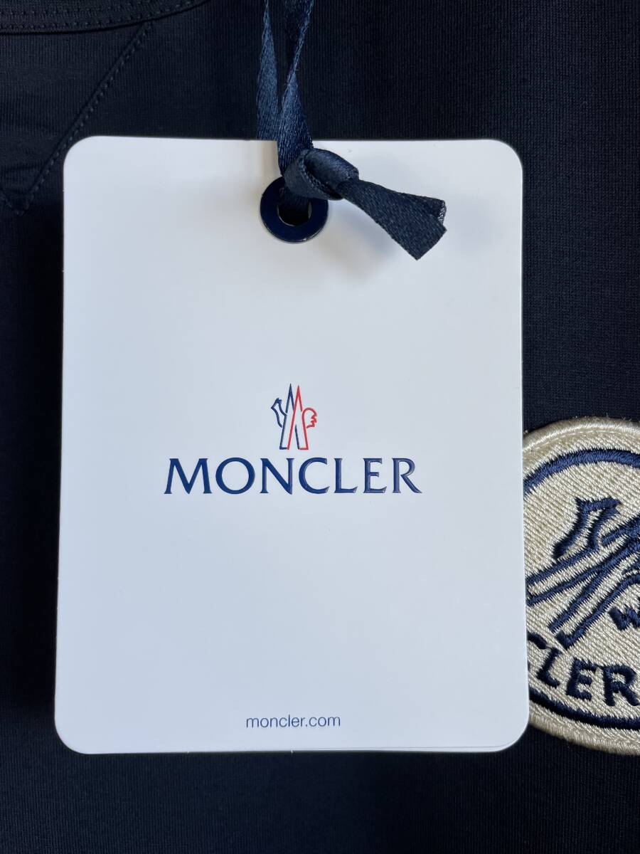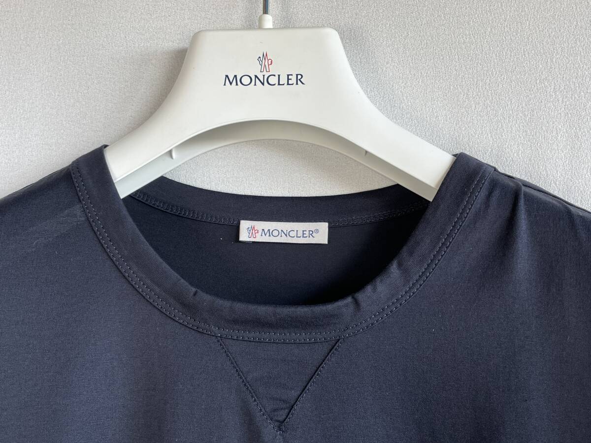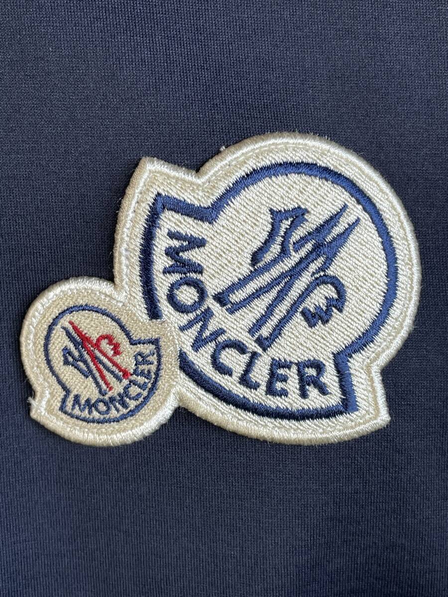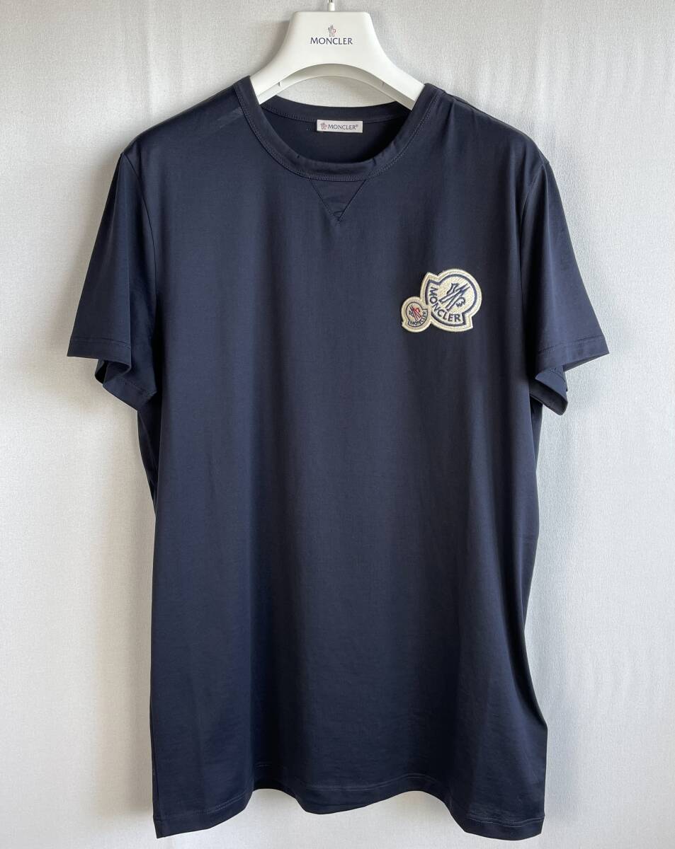 新品 本物 モンクレール 定番 人気 ロゴ ワッペン Tシャツ M MONCLER ネイビー 紺 ロゴT 半袖 プリント トップス ダブル ワッペン