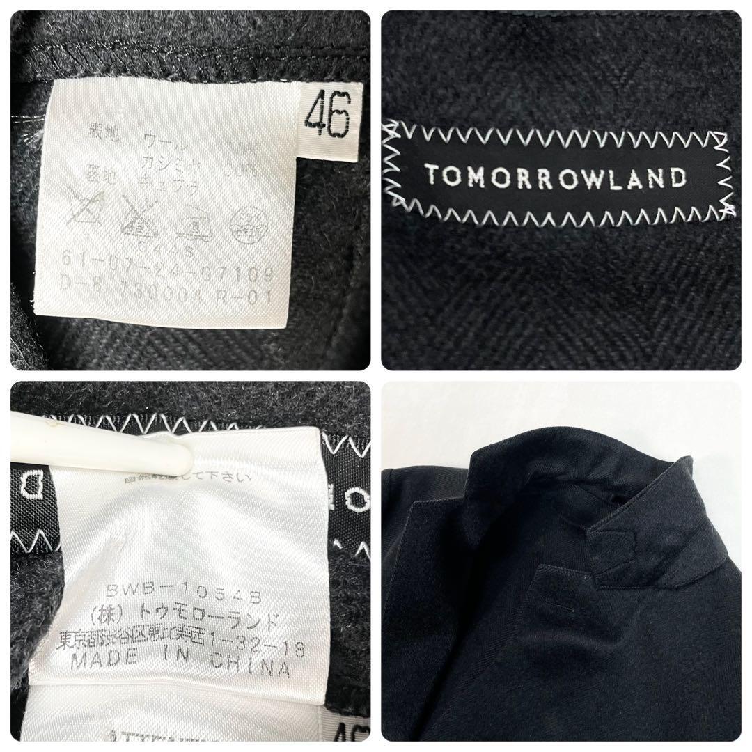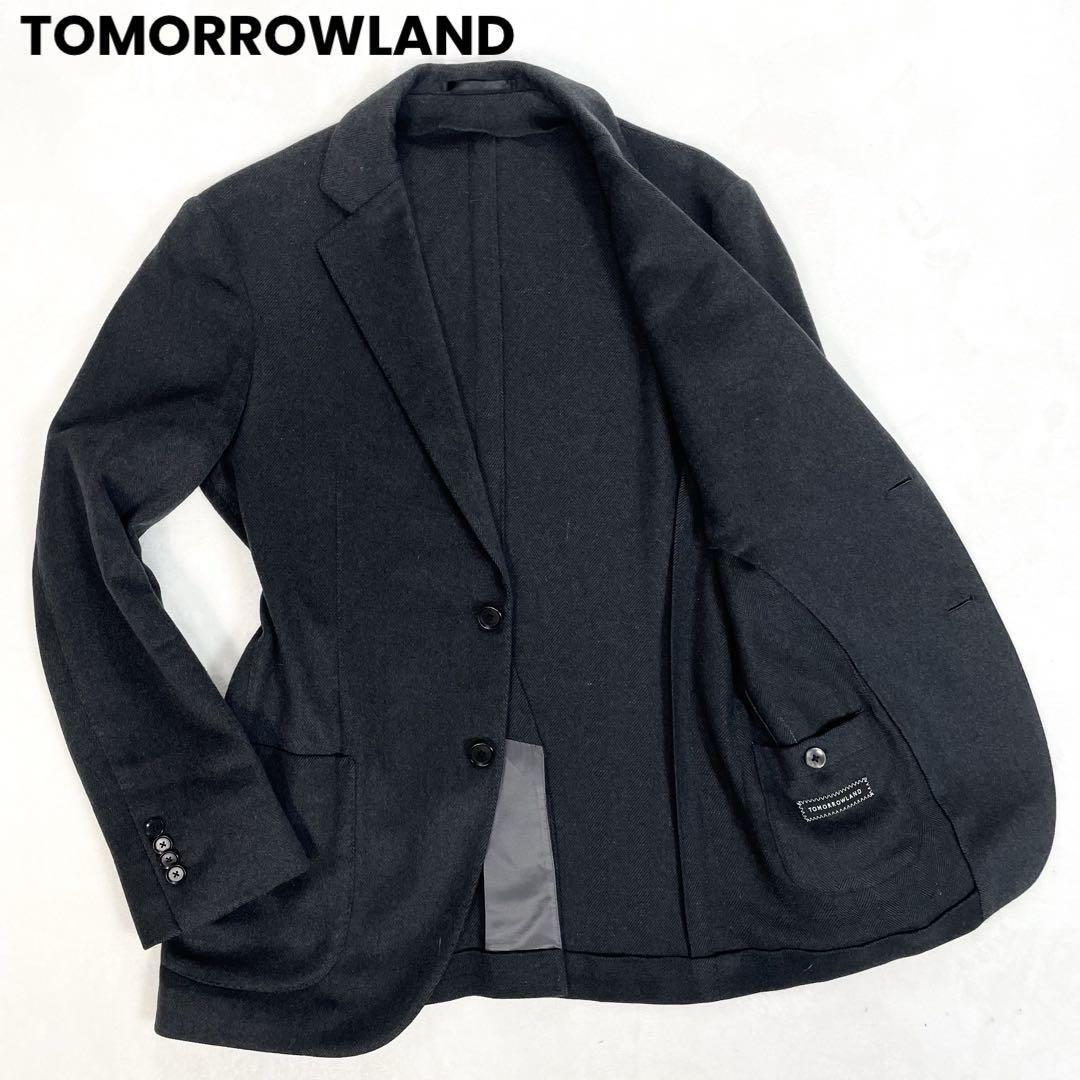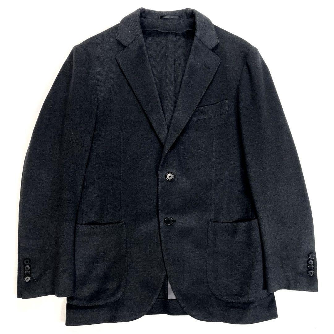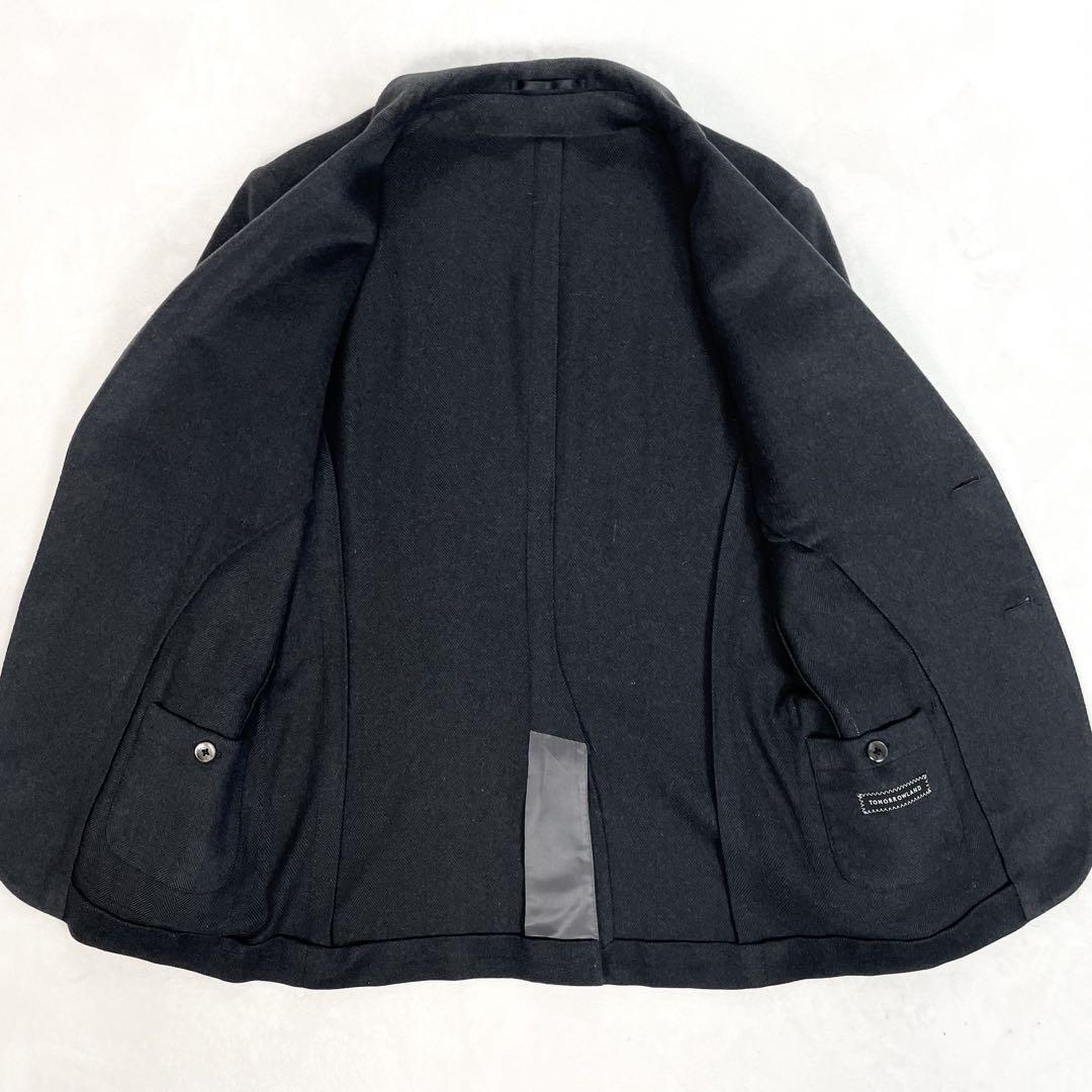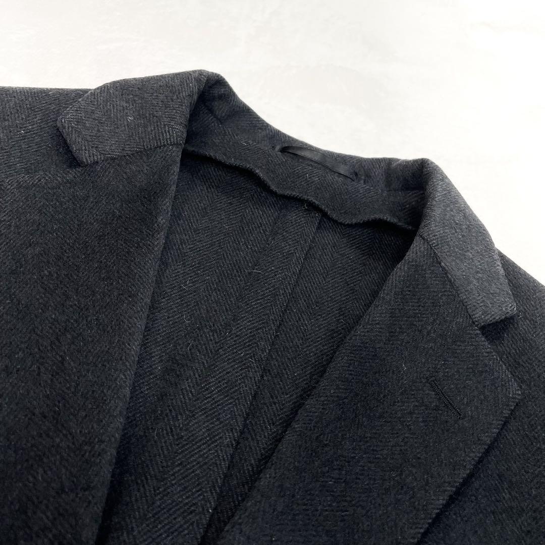tomorrowland トゥモローランド カシミヤ混ウール ヘリンボーン アンコンジャケット 46 チャコールグレー