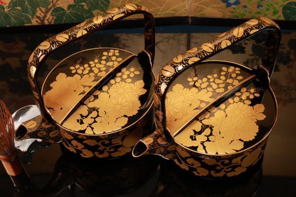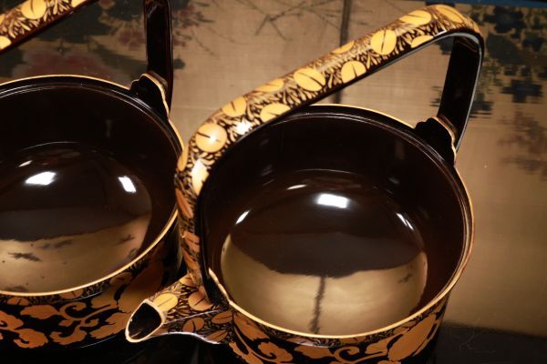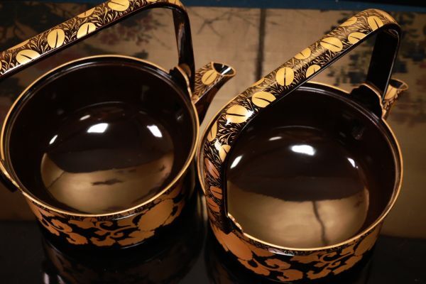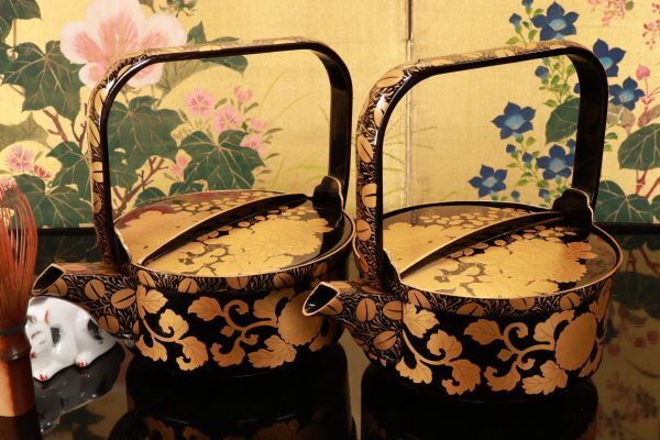 時代漆器 輪島塗 菊総蒔絵 銚子 一対 木製 BJ127