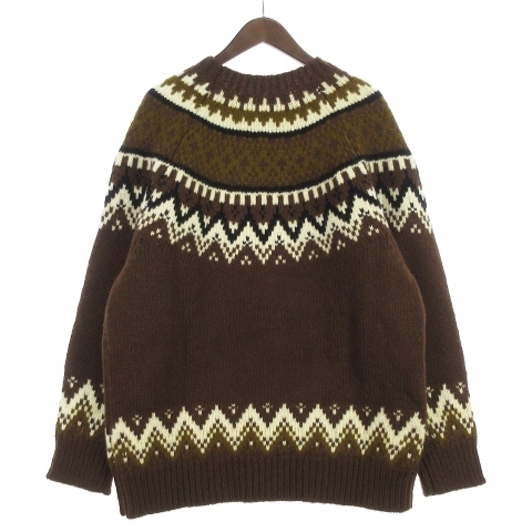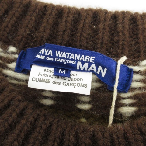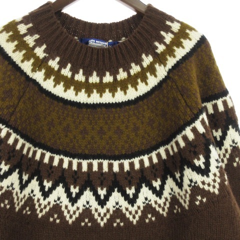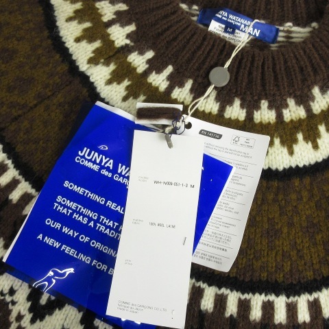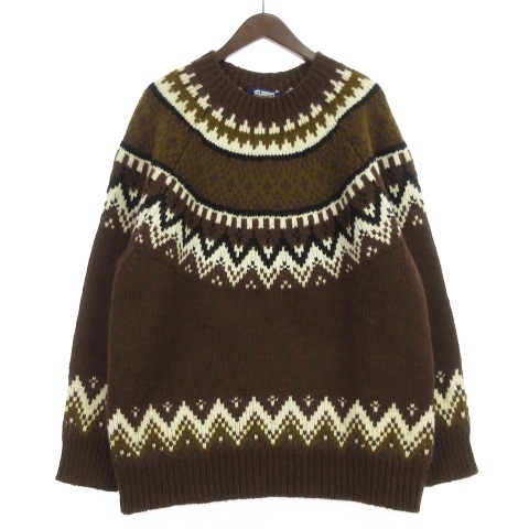 未使用品 ジュンヤワタナベマン JUNYA WATANABE MAN コムデギャルソン 21AW ニット セーター 長袖 厚手 ノルディック 求心柄 ウール 茶 ブラウン M メンズ