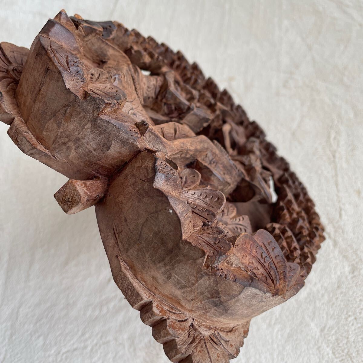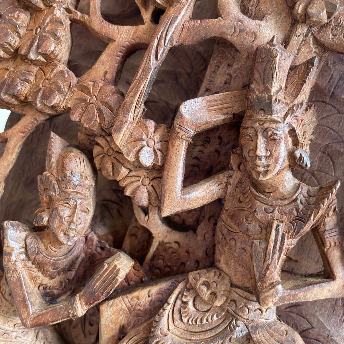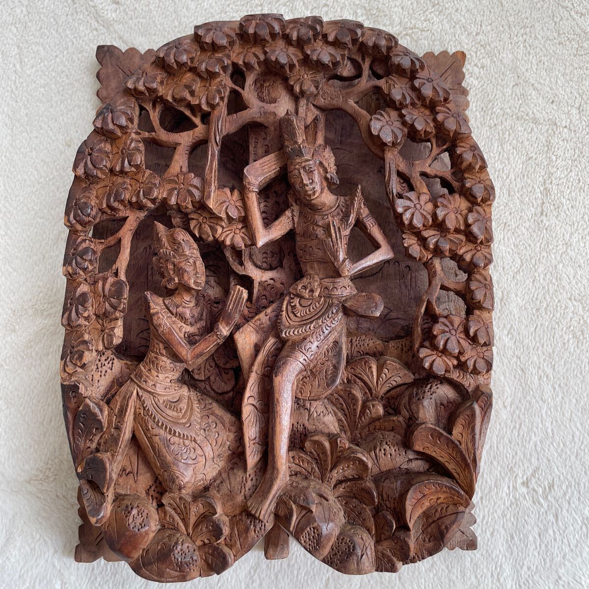 精巧な手彫り 東南アジア 仏教神話 工芸 木彫 壁掛け アート 仏教美術 レリーフ ヴィンテージ インテリア 雑貨 エスニック コレクション