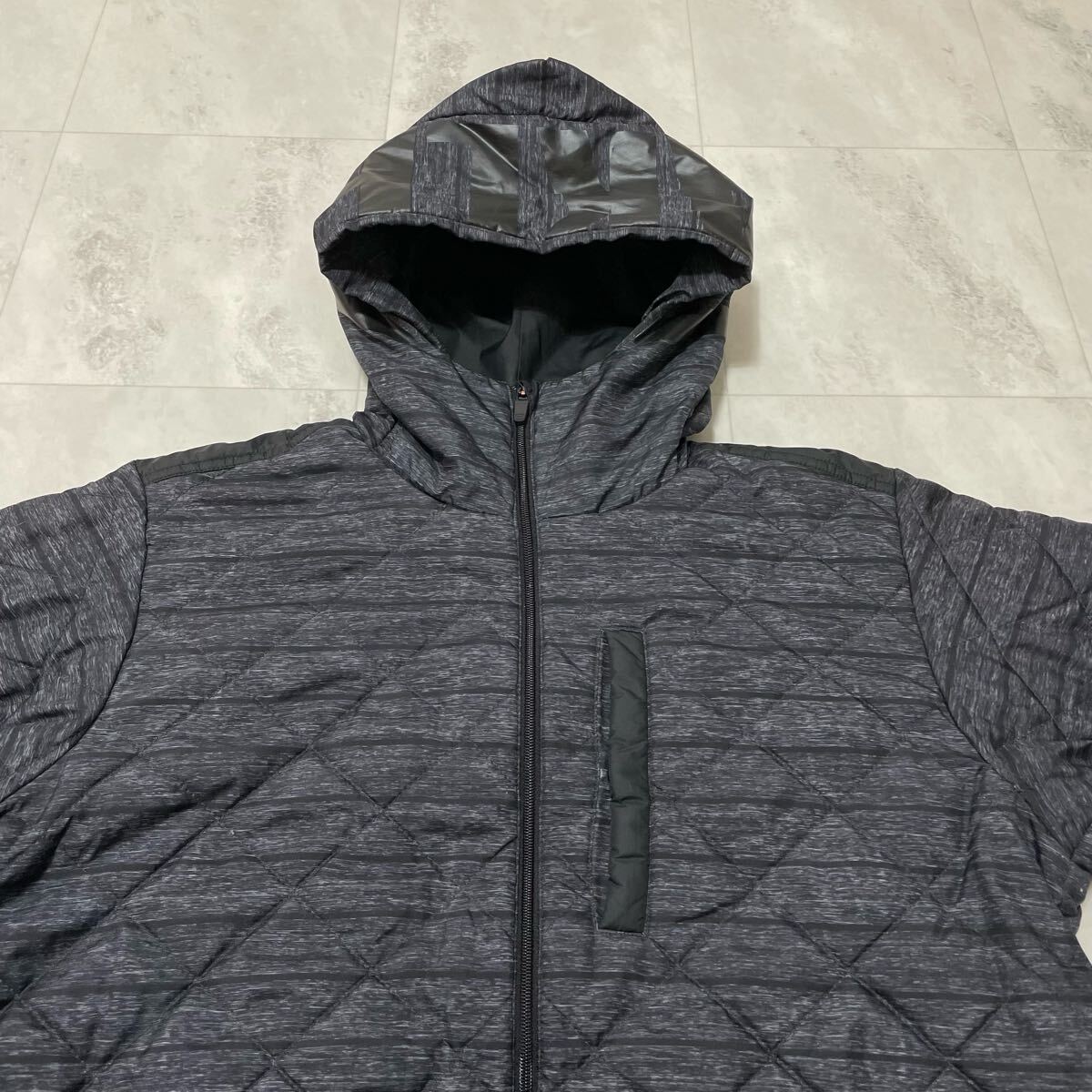 OAKLEY オークリー ナイロンジャケット 中綿 ジップアップパーカー フード ビッグプリント ボーダー ブラック サイズM 玉SS3064