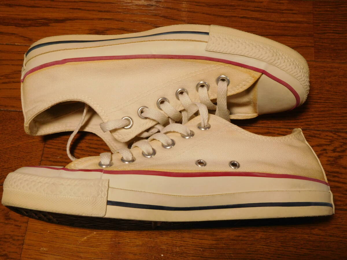 USA製 90年代★CONVERSE コンバース CHUCK TAYLOR チャックテイラー ローカット ★サイズ US 5 アウトソール約26cm★90年代のヴィンテージスニーカーで写真のようにソールの減り、汚れ等ありますが致命的なダメージありません。古い商品ですのでご理解のある方のみお願いいたします状態は出品時に確認はしておりますが小さな見落としがあることもあります。極端に神経質な方はお控えください☆ご入札・ご落札後はノークレーム、ノーリターン、ノーキャンセルでお願いします☆ 説明文、写真で気になることがありましたら、トラブル回避のため質問をお願いします☆ スムーズなお取引のために下記の事項にご協力、ご了承願います・オークション終了後24時間以内にご連絡、3日以内にご入金可能な方のみご入札をお願いします・ご連絡いただけない場合は「落札者都合によりキャンセル」とさせていただきます・評価が極端に悪い方、新規IDの方のご入札はお控えください。場合によっては削除させていただきます★ゆうパック60サイズ発送予定です