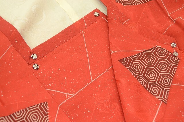 着物 コート 中古 リサイクル着物 正絹 道行衿 幾何学文様 赤系 ll0419c