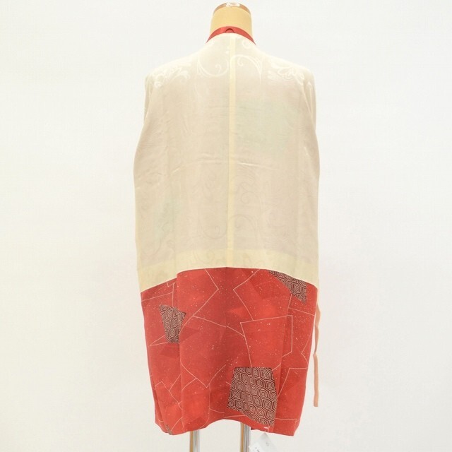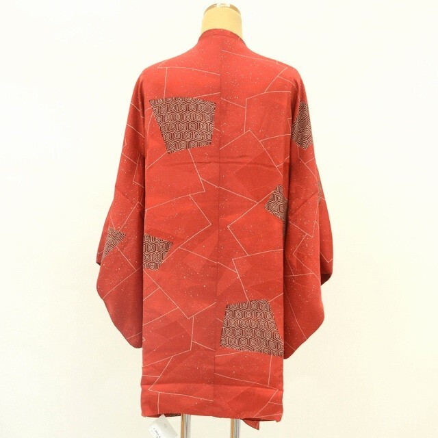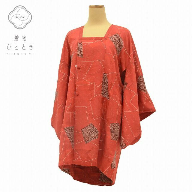 着物 コート リサイクル着物 着物 コート 正絹 道行衿 幾何学文様 裄65cm はおり 赤系 裄Mサイズ ll0419c 【着物ひととき】