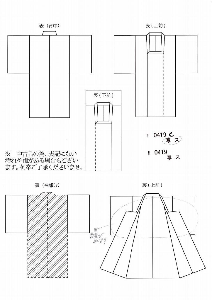 身丈(肩から)88.2cm 裄丈 65cm 袖丈 48cm 袖幅 32.5cm 前幅 19.6cm 後幅 29cm