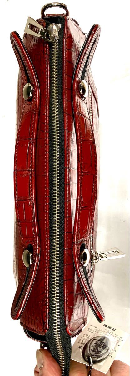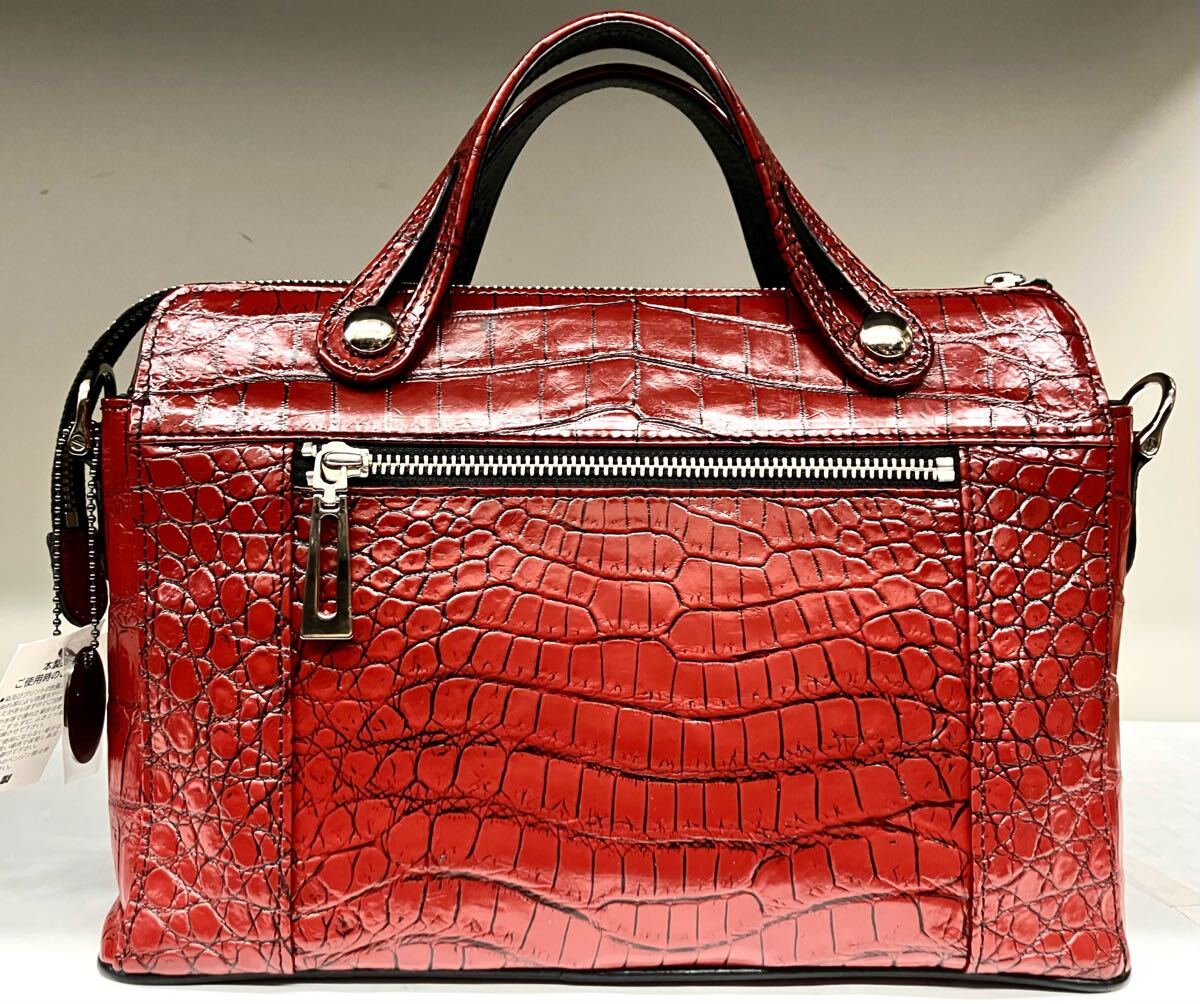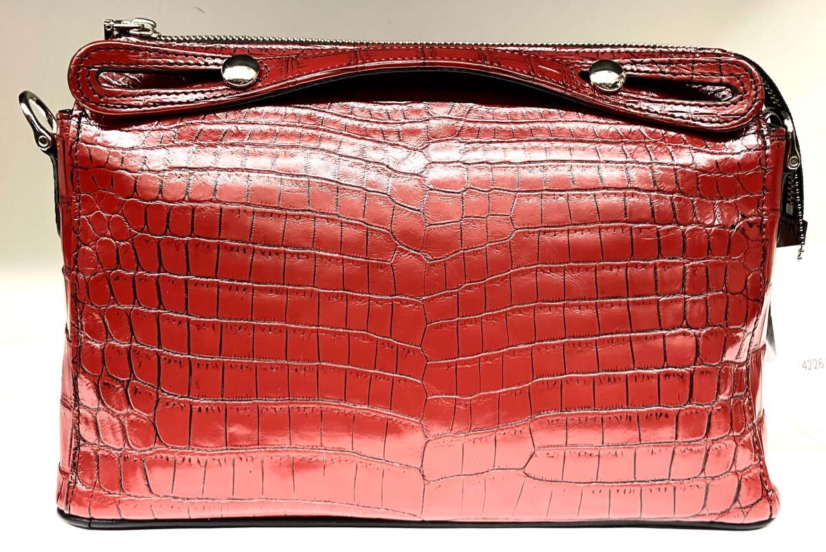 イザワの店頭でも人気のあるクロコダイルのセカンド、手提げ、ショルダーバックになる