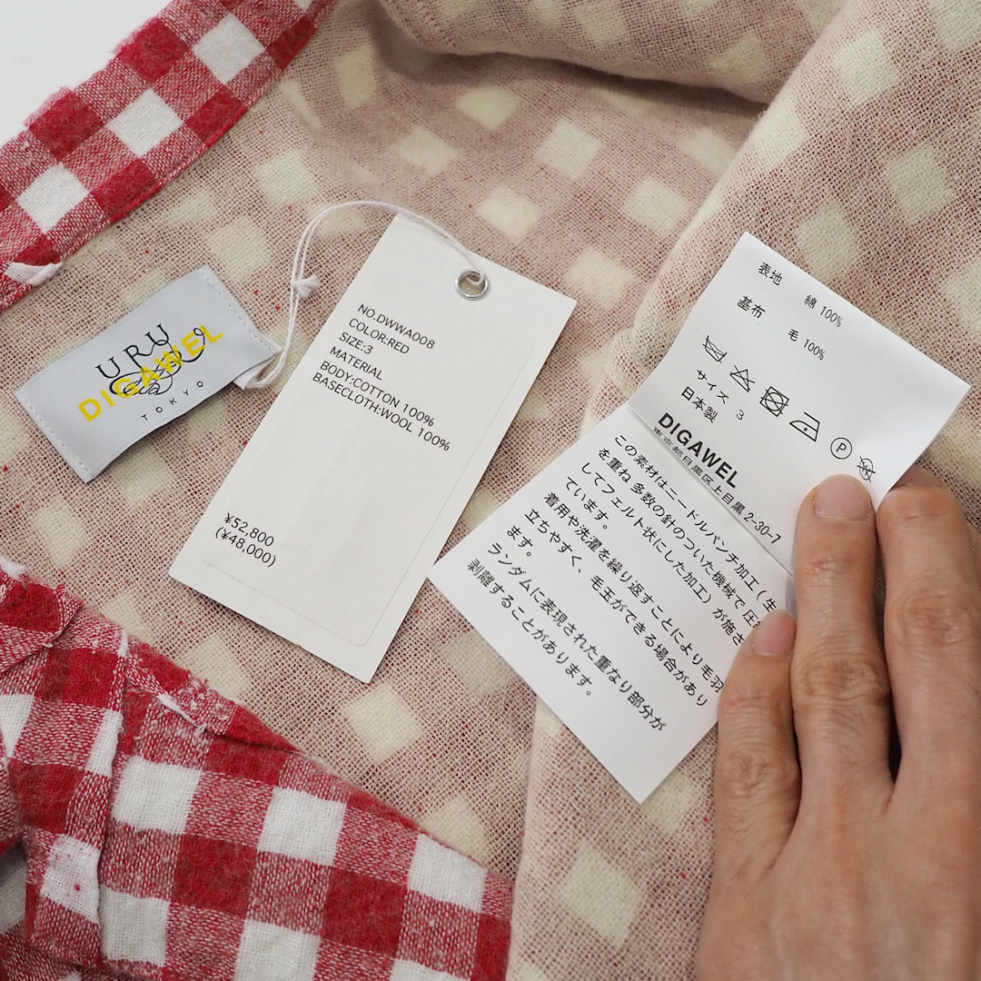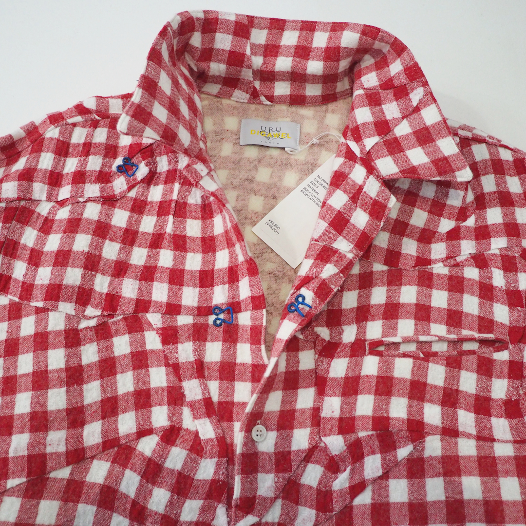 新品 定価52800円 ディガウェル x URU TOKYO 23ss 春秋 ギンガム チェック デザイン シャツ ジャケット 赤 レッド メンズ L XL 2XL DIGAWEL