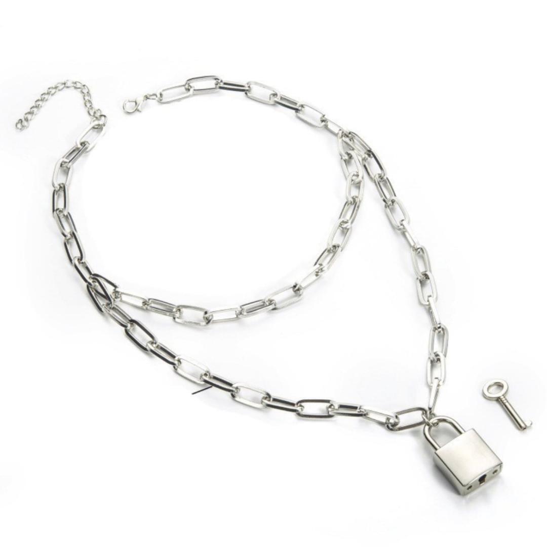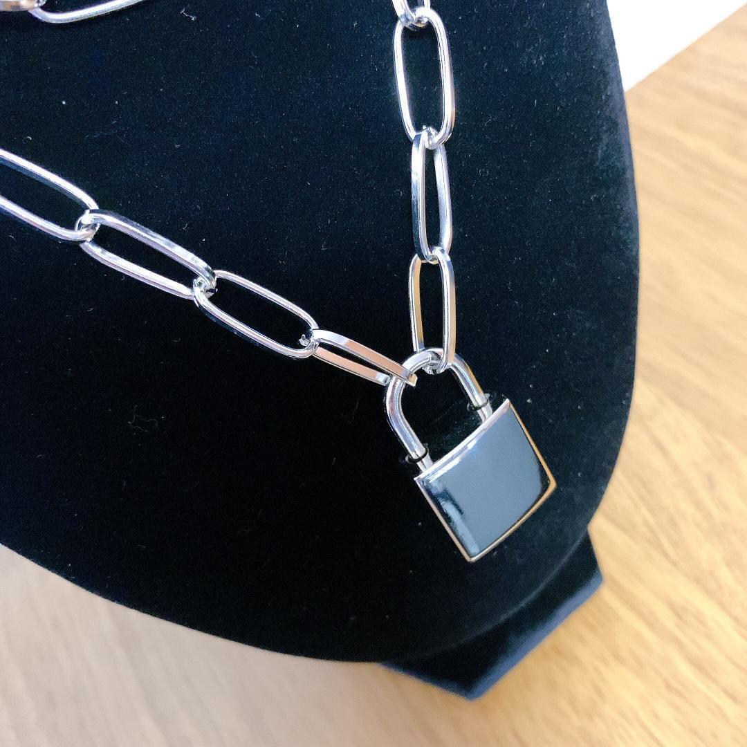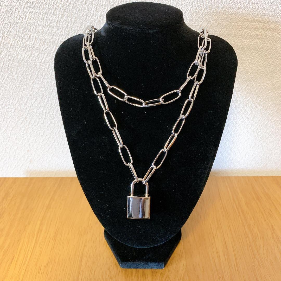 南京錠ネックレス ダブル チェーン シルバー