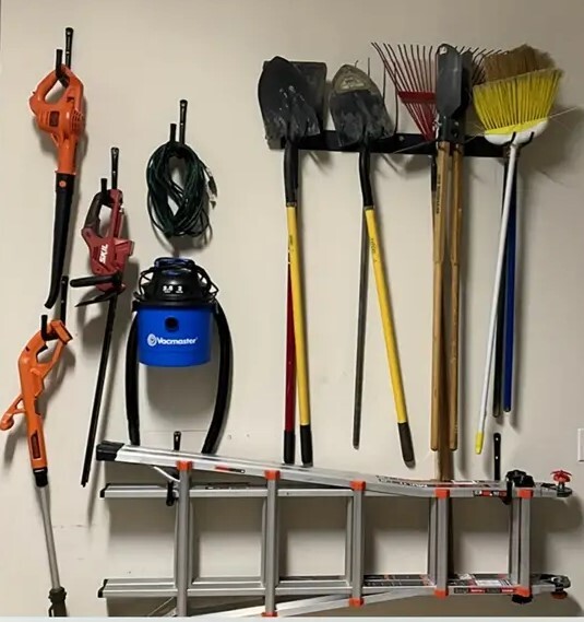 【壁掛け収納】こちらのガレージ収納フックは、作業場やガレージ等の収納や整理に非常に便利で、脚立、はしご、自転車、芝刈り機、エアホース、延長コード、スコップ、レーキ、電動工具、その他のかさばるアイテムの収納に最適です。