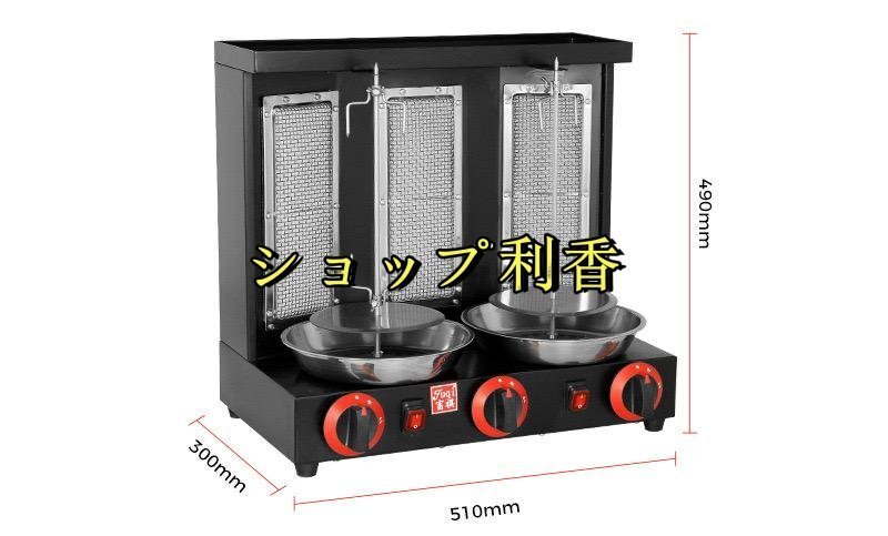 ケバブマシン 焼き鳥機 縦型グリラー 家庭用 業務用 キッチン用 360°回転可能 温度調整可能 無煙 ガス管付き ステンレス鋼 2800P サラダチキンメーカー ローストチキン 焼き豚とご飯 飲食店向け ケバブ機械 黒色 ダブル510*300*490mm