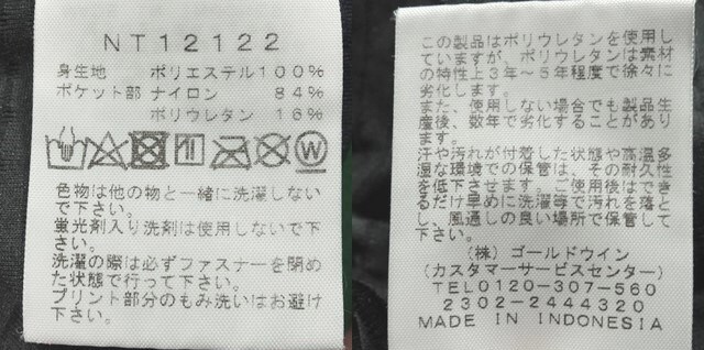 DotKnit(ポリエステル100%)<胸ポケット>Apex Softshell Super Light(ナイロン84%、ポリウレタン16%)