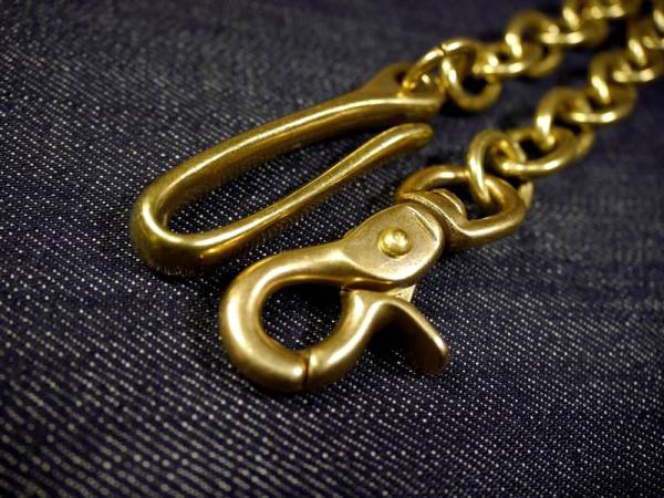 | 真鍮 ブラス ナスカン&釣り針フック 小判型ウォレットチェーン | |