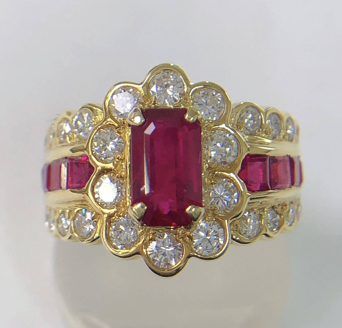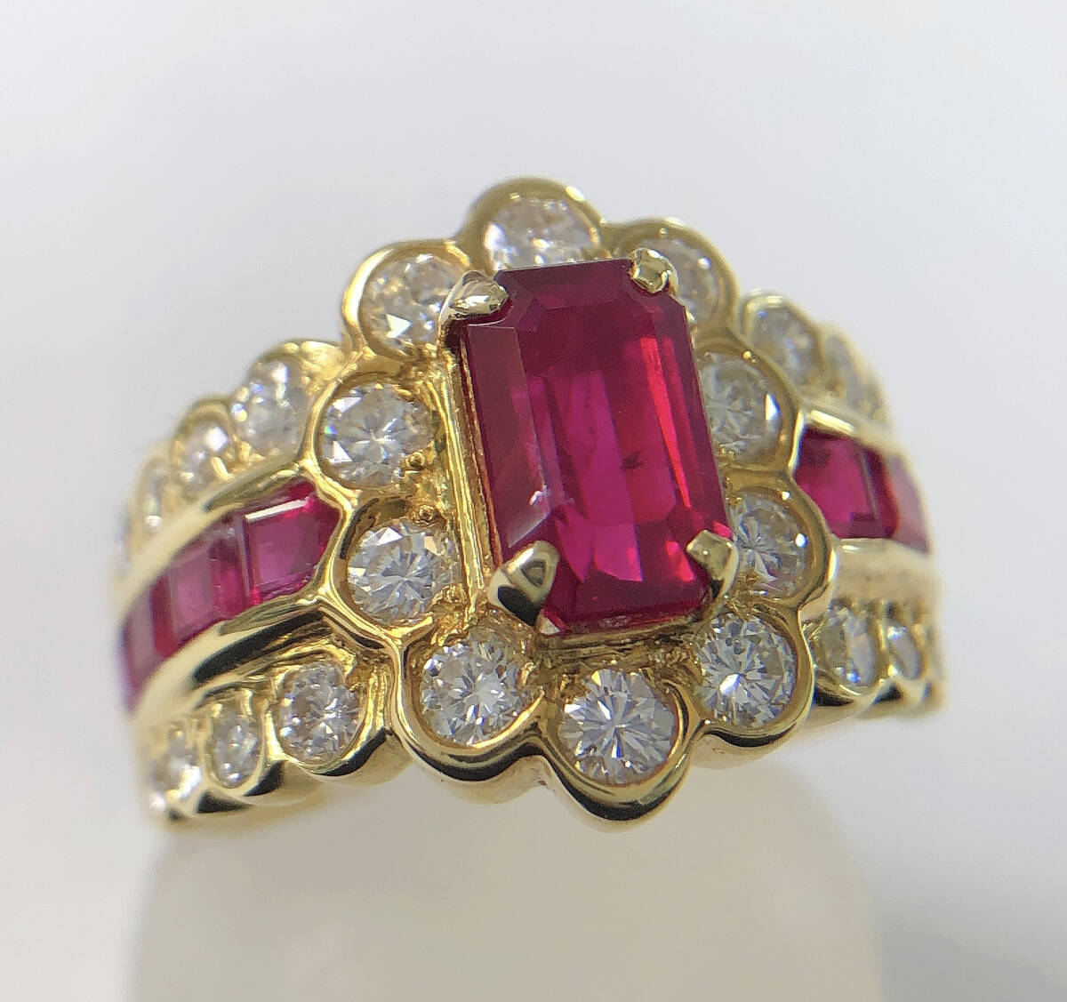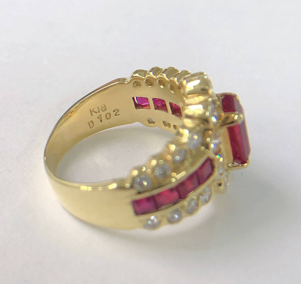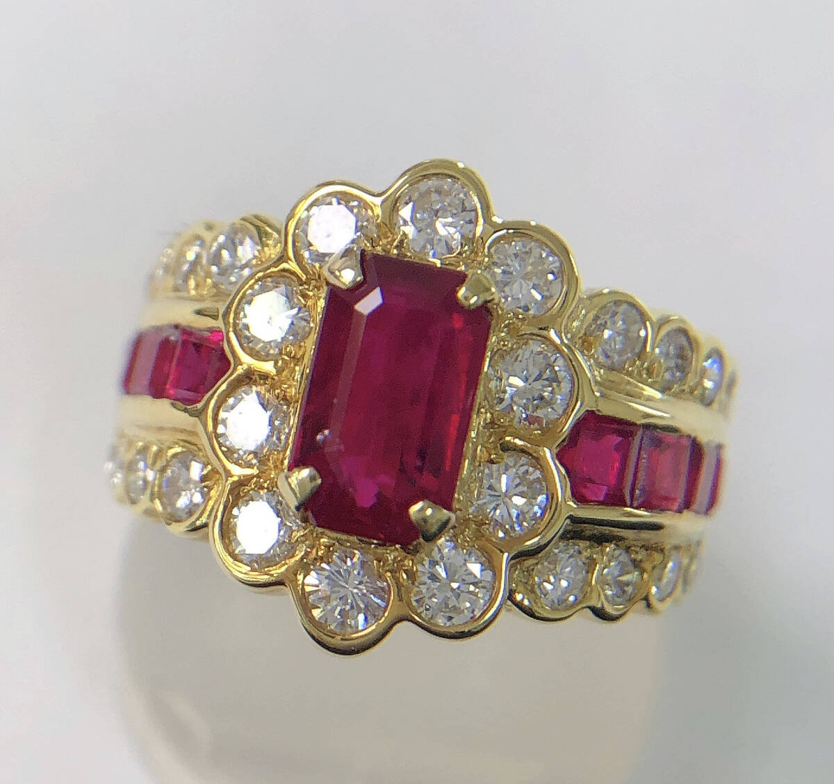 綺麗 Thailand産 K18 天然ルビー1.46ct 1.07ct 天然ダイヤモンド1.02ct リング 指輪 約11号 約9.0g GIA鑑別書付