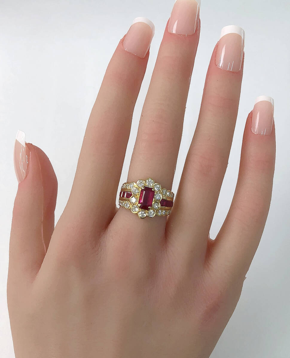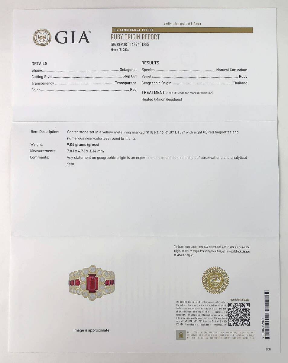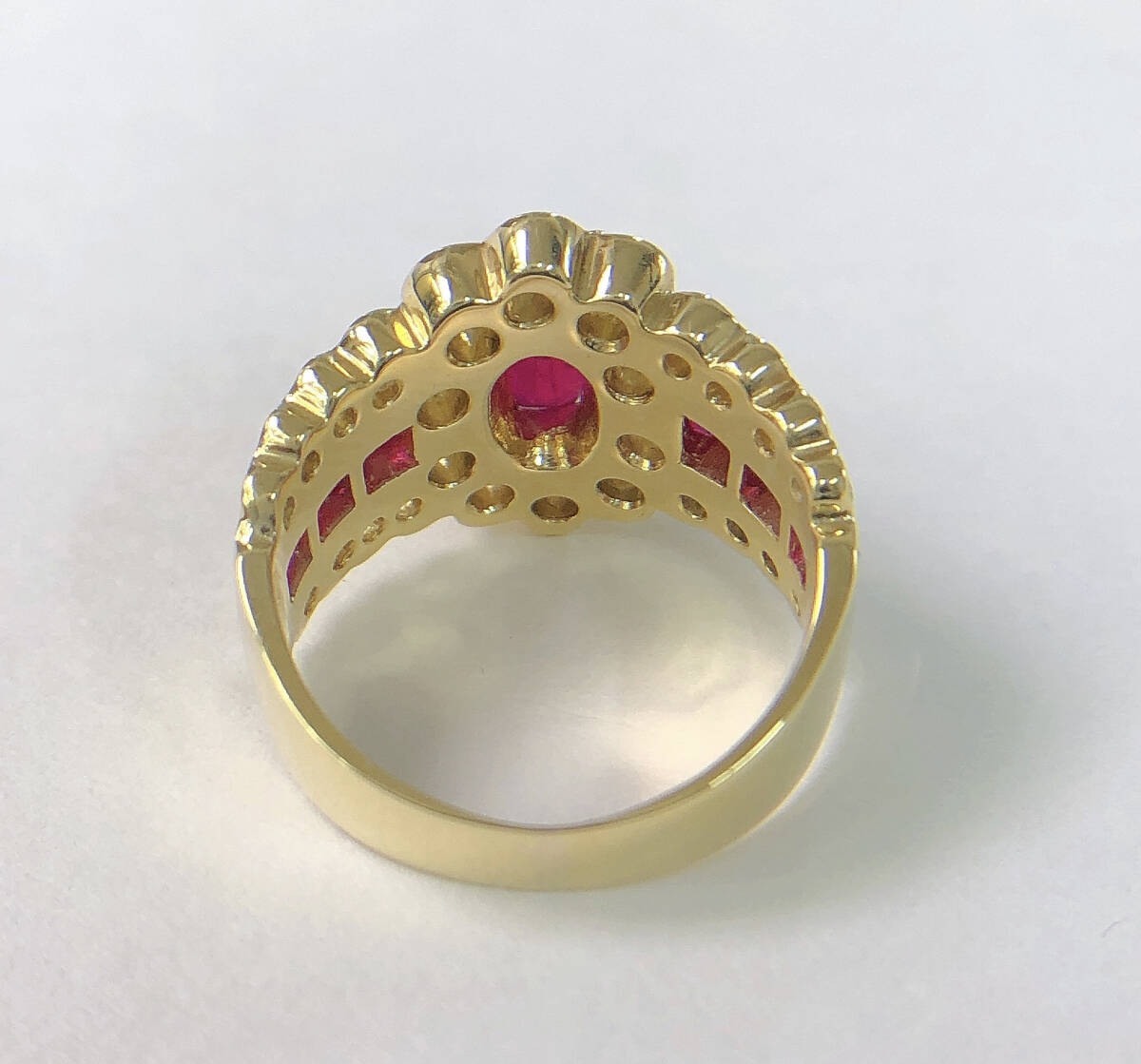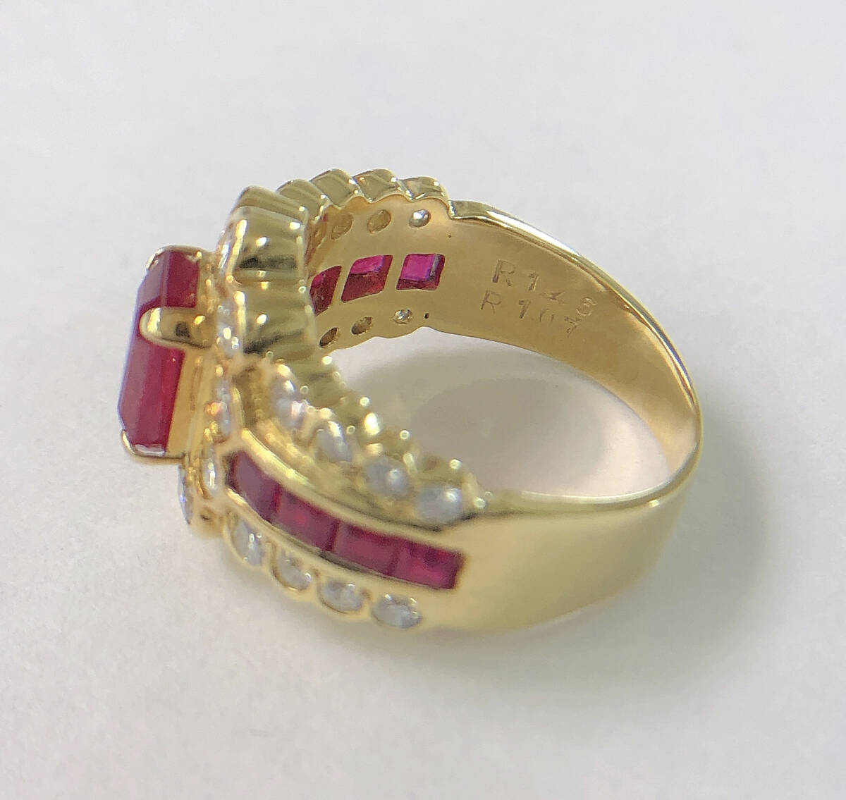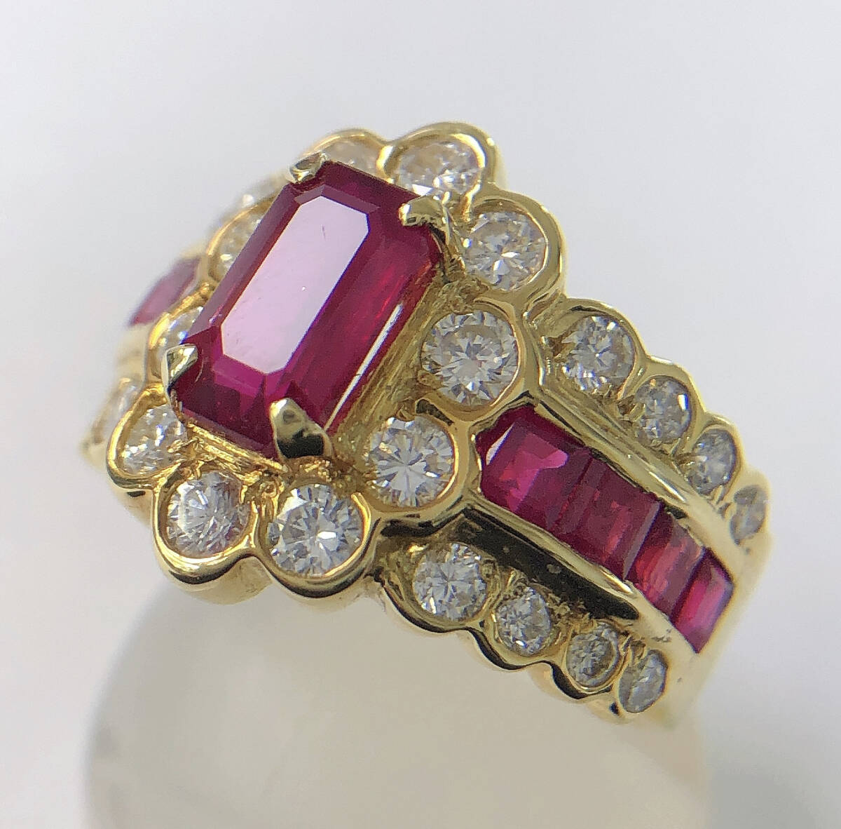 綺麗 Thailand産 K18 天然ルビー1.46ct 1.07ct 天然ダイヤモンド1.02ct リング 指輪 約11号 約9.0g GIA鑑別書付