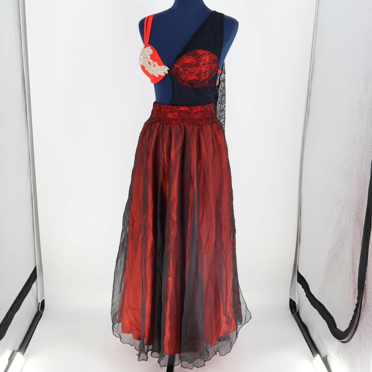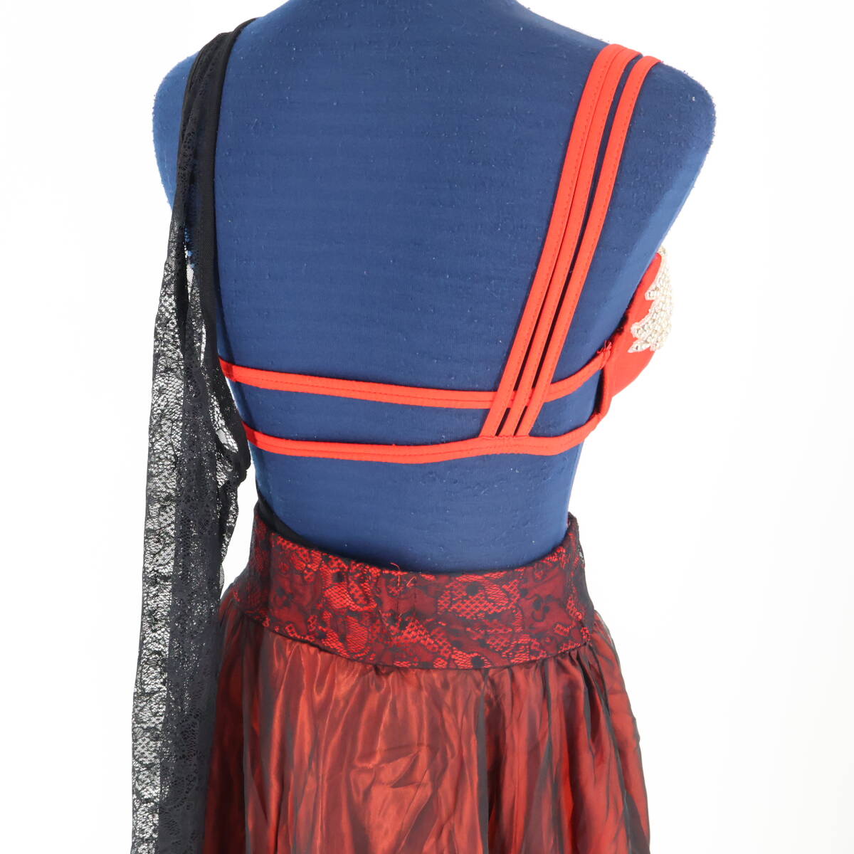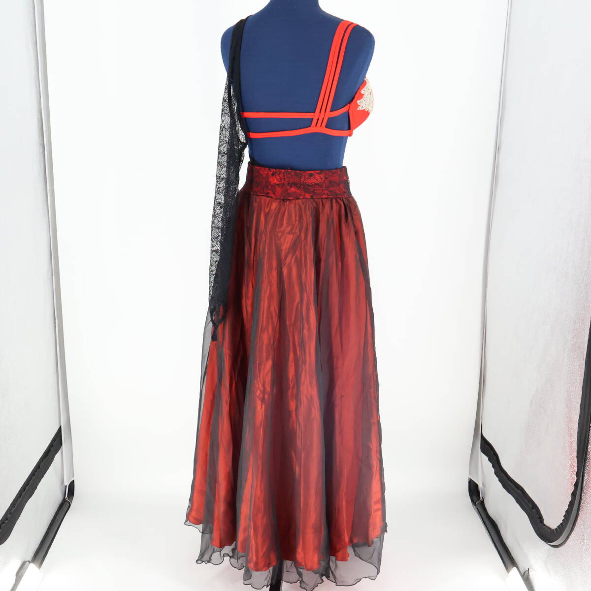 | 商品説明 | 【商品名】ベリーダンス オリエンタル衣装 トップス 【サイズ】 平置き実測:パッド両端長さ約32cm、アンダーストラップ(ブラ部分を除く)上約29cm 下約30cm ※実測の為、多少の誤差はご容赦願います。 【仕様】 ・アンダーストラップ伸縮性有り スカート 【サイズ】 平置き実測:総丈約93cm、ウエスト約32cm~、スリット約80cm ※実測の為、多少の誤差はご容赦願います。 【仕様】 ・ウエストゴム仕様 ・伸縮性有り ・左右スリット有り ------------------------------------ 【ポイント】 ▽赤黒の衣装 ▽オーガンジーのスカートがオシャレ ▽トップス スカート セット ------------------------------------ 【撮影時使用トルソー:女性用トルソー9号(一般的に使用されるサイズです)】 トルソーサイズ詳細 肩幅約37cm、バスト約88cm、ウエスト約66cm、ヒップ約89cm |