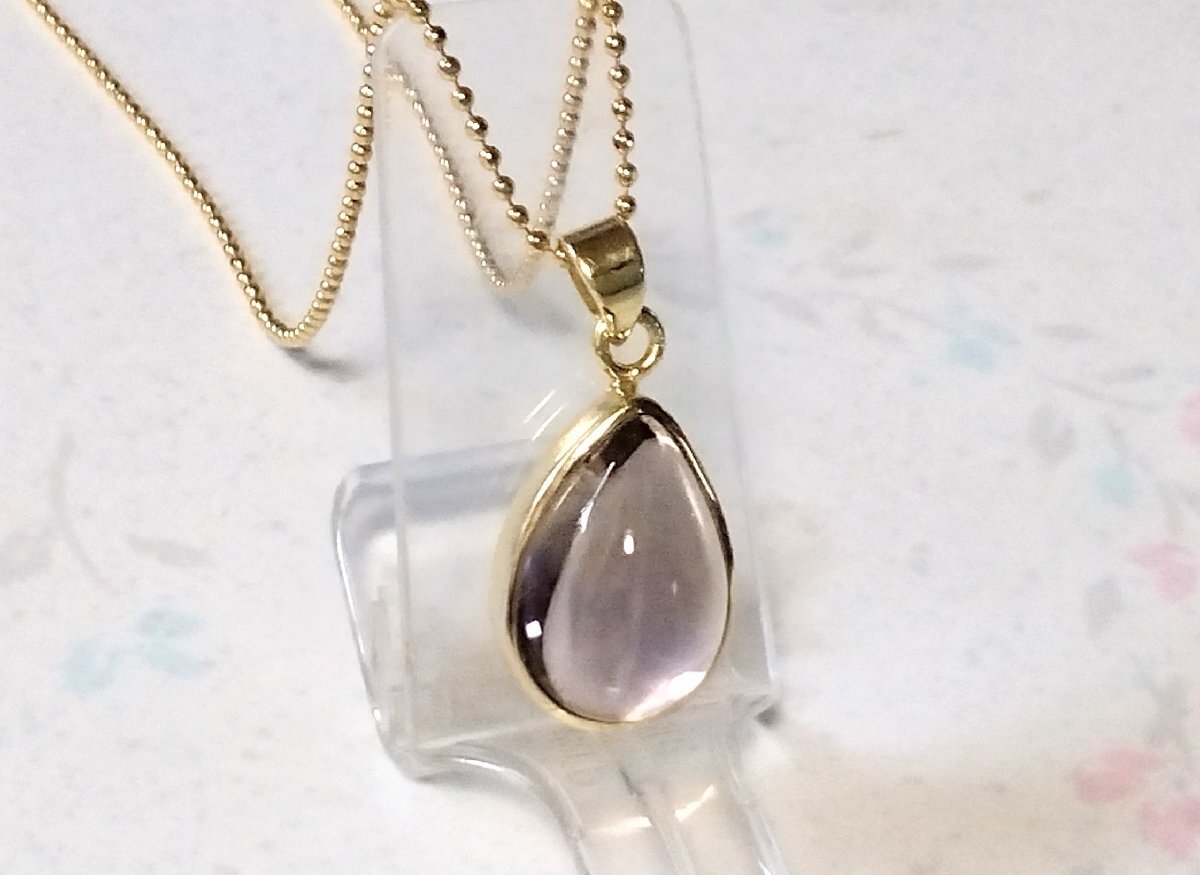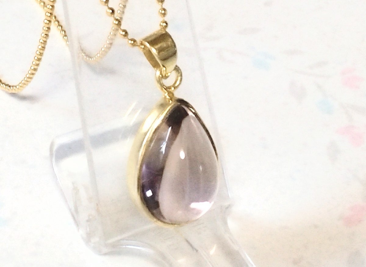 サイズ | ★サイズ:トップの大きさは、 縦約21×横約12.3ミリ×厚さ約8.3ミリです。 ★アメトリン1石の大きさは 縦約17.2×横約12.3ミリx厚さ約8.3ミリです。 ★ チェーンはシルバー925 カットボールチェーン1.2×45cm 18kGP仕上げです。 |