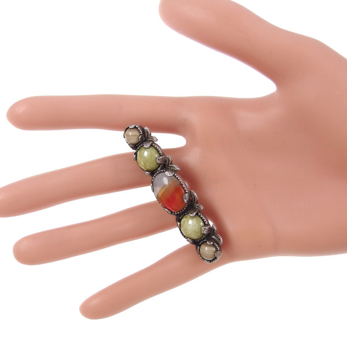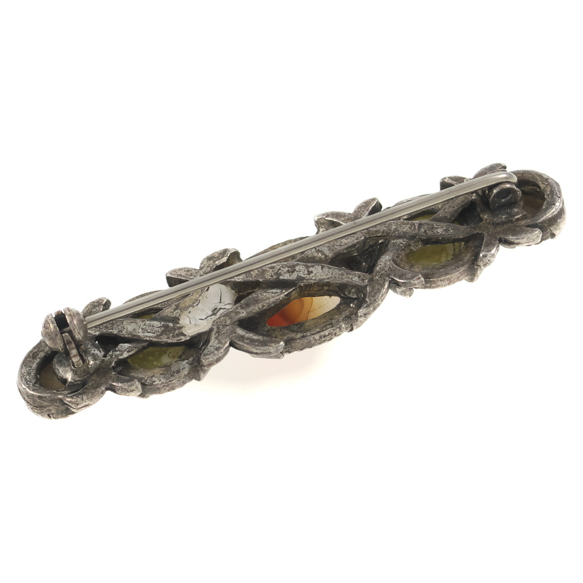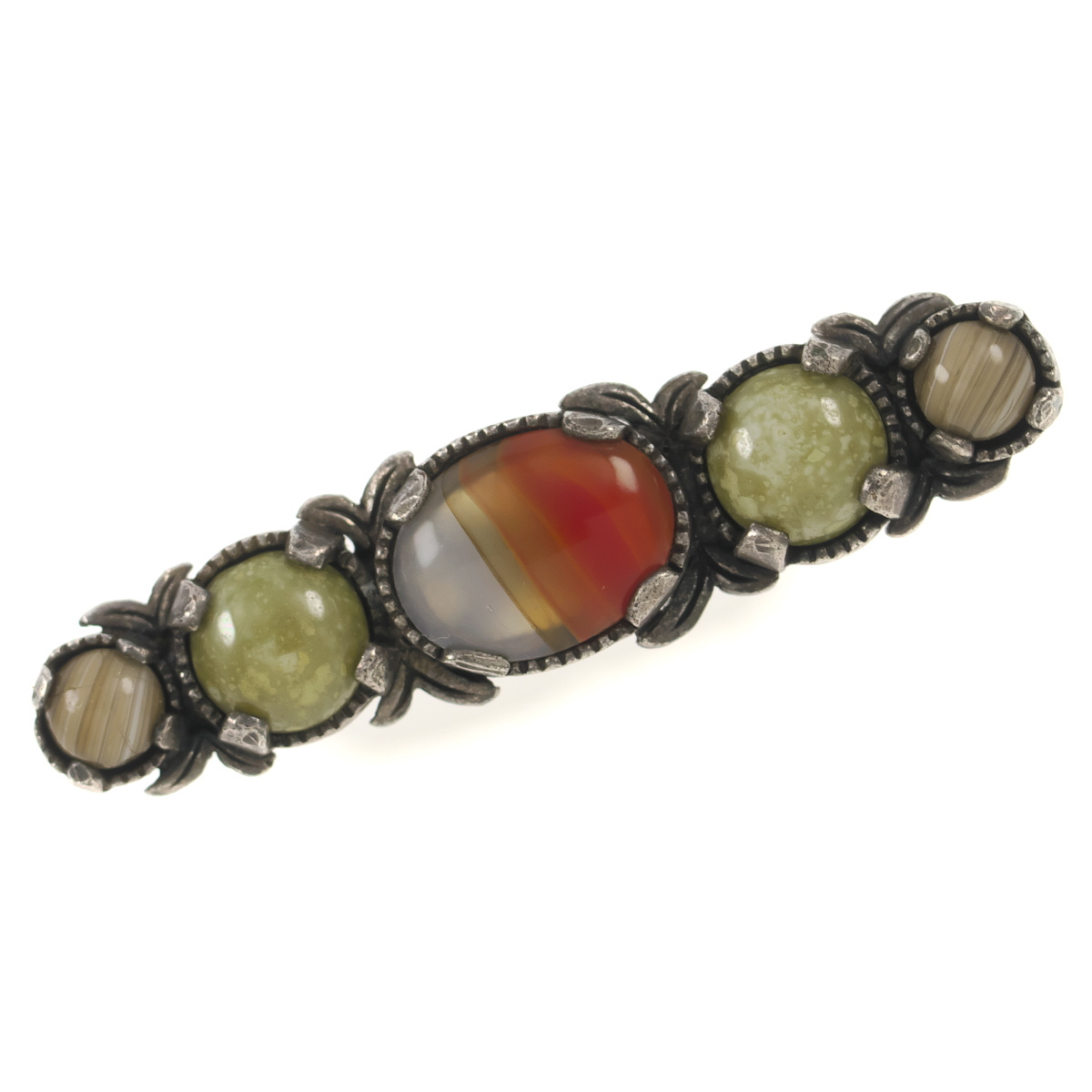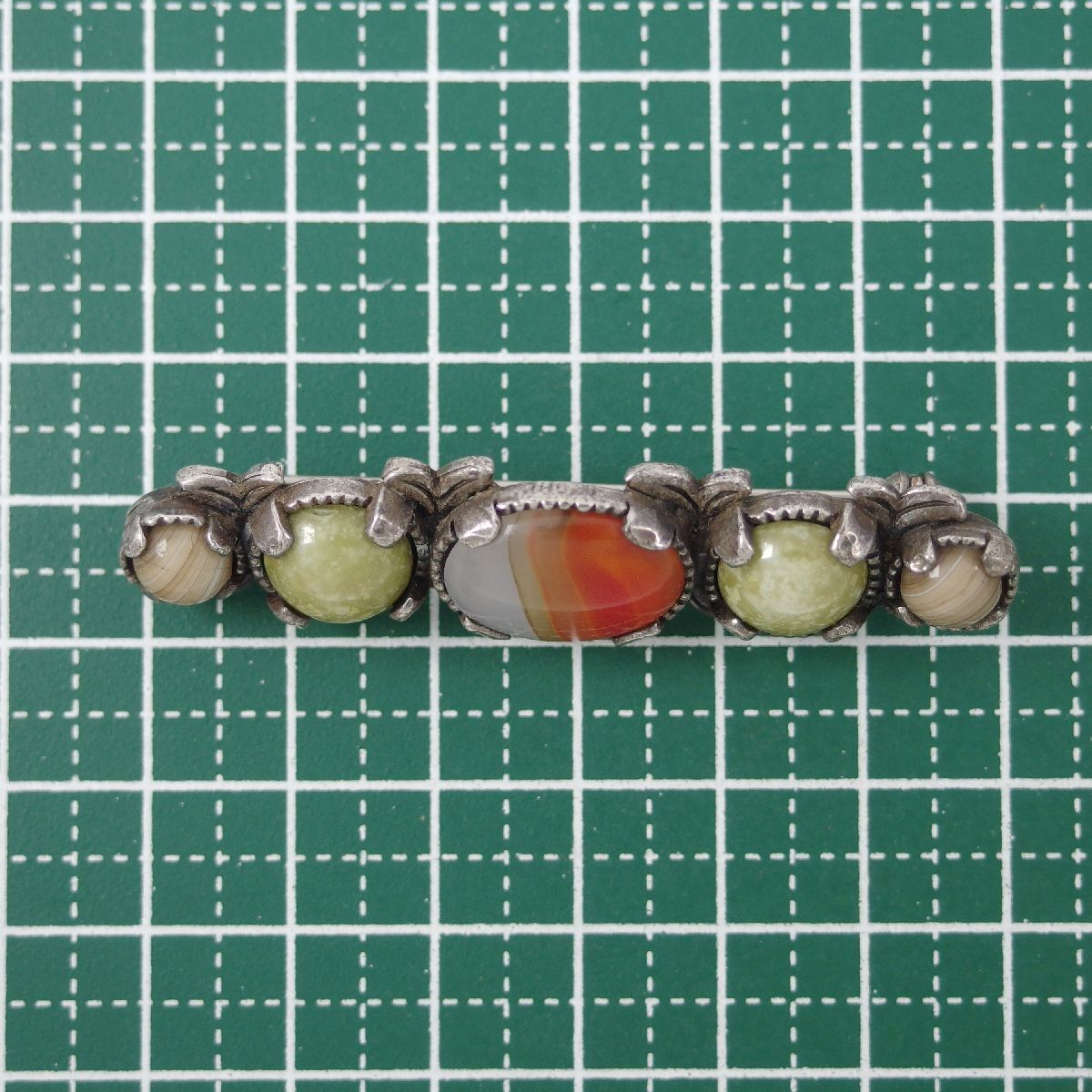 UK3343◆ バー型 3色 5粒のカボションストーン ケルト 英国 イギリス ◆ ヴィンテージブローチ