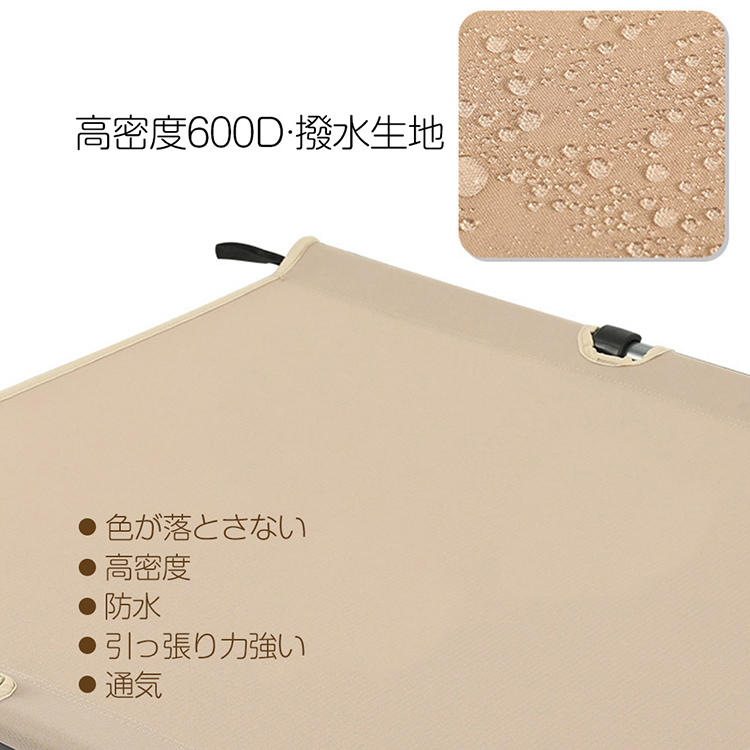 ●アウトドアベッドのパイプは高品質アルミで作られており、最大150kgの荷重に耐えることができます。 高密度オックスフォード生地、防水性と通気性があり、生地の厚みが増すことで耐久性が向上し、地面の冷気や暖気を遮断します。ピンと張りのあるシートで丁度よい沈み込みを実現。